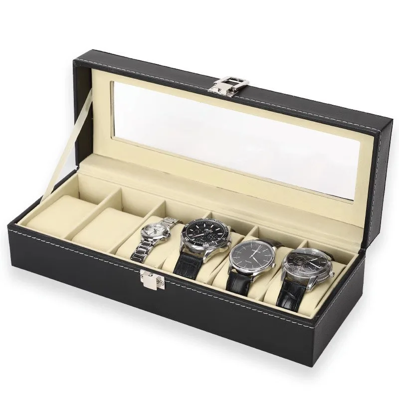 3/6/12 Slot Men Watch Display Case PU Leather Watch Organizer Box Black Watch Bracket Display Box Holiday Gift