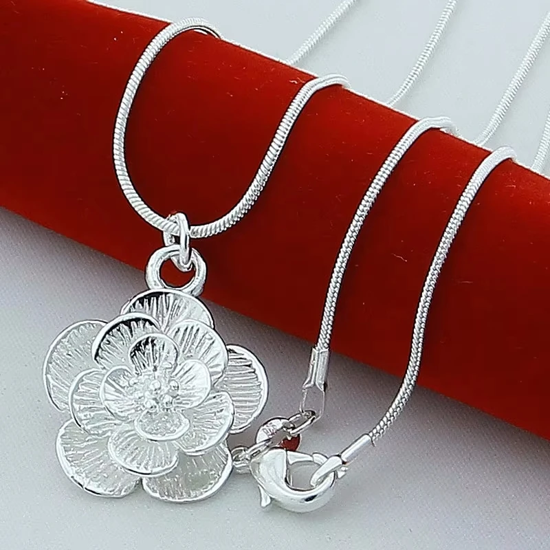925 Sterling Silver Rose Flower Pendant Necklace 16/18/20/22/24/26/28/30 Inch Snake Chain For Women Wedding Engagement Jewelry