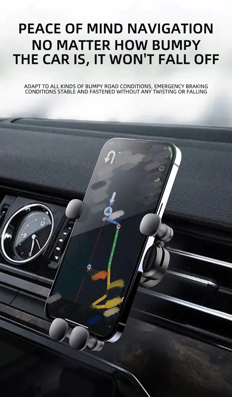 Gravity car phone holder for iPhone 14 Samsung Xiaomi smartphone holder support air vent clip GPS mount stand