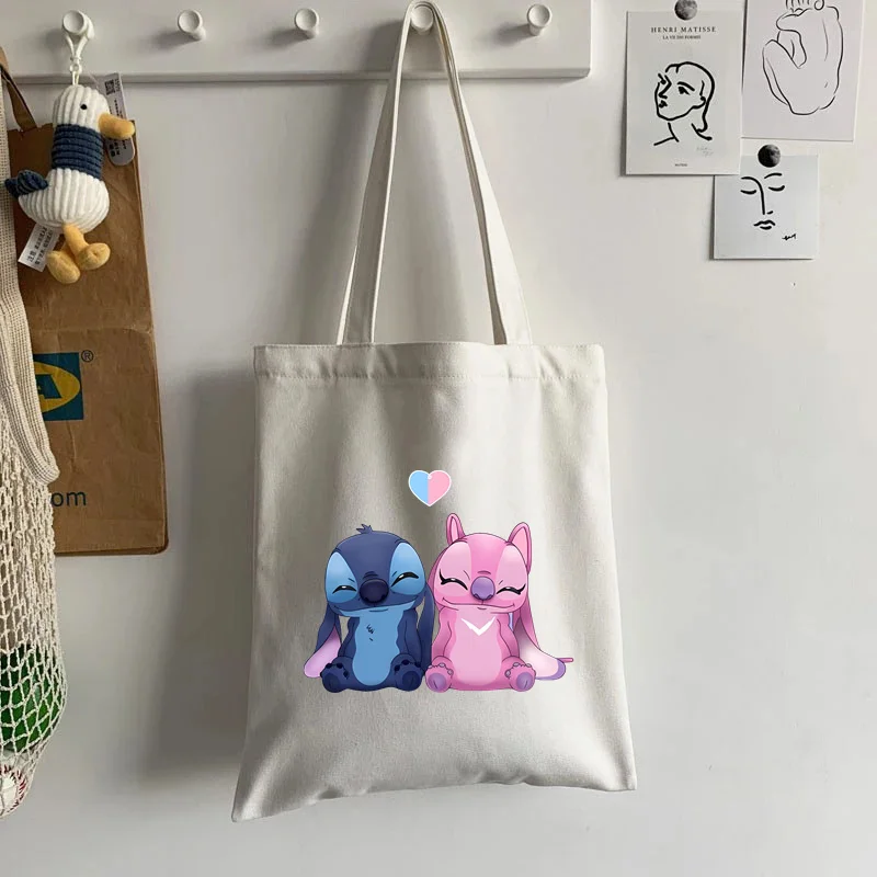 Cute Lilo Stitch Women's Tote Bag Canvas High Capacity Soft Shoulder Bag Women's Handbag Casual Comunting Shopping Bags Gift
