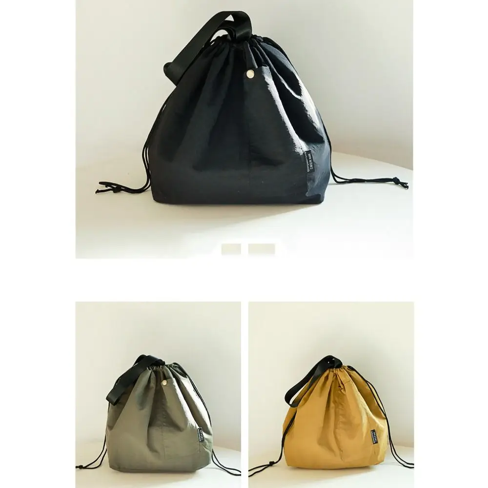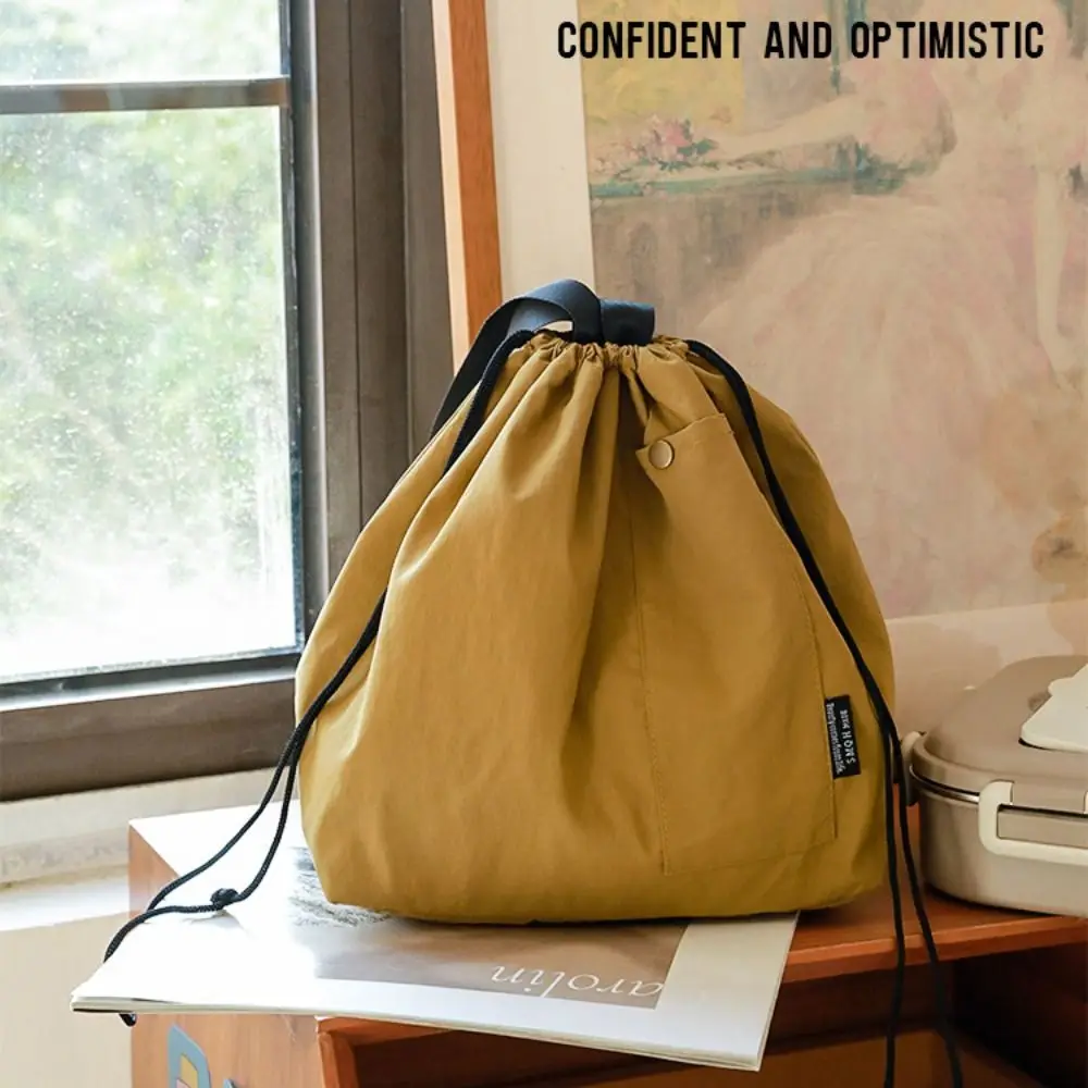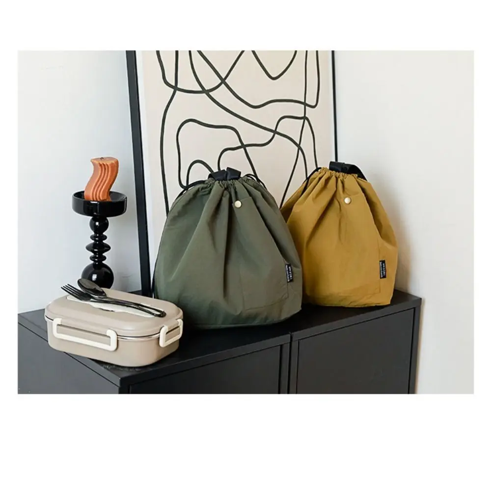 Durable Nylon+Polyester Lunch Bags Green Khaki Black Large Capacity Thermal Insulation Bag Drawstring Lunch Pack Outdoor