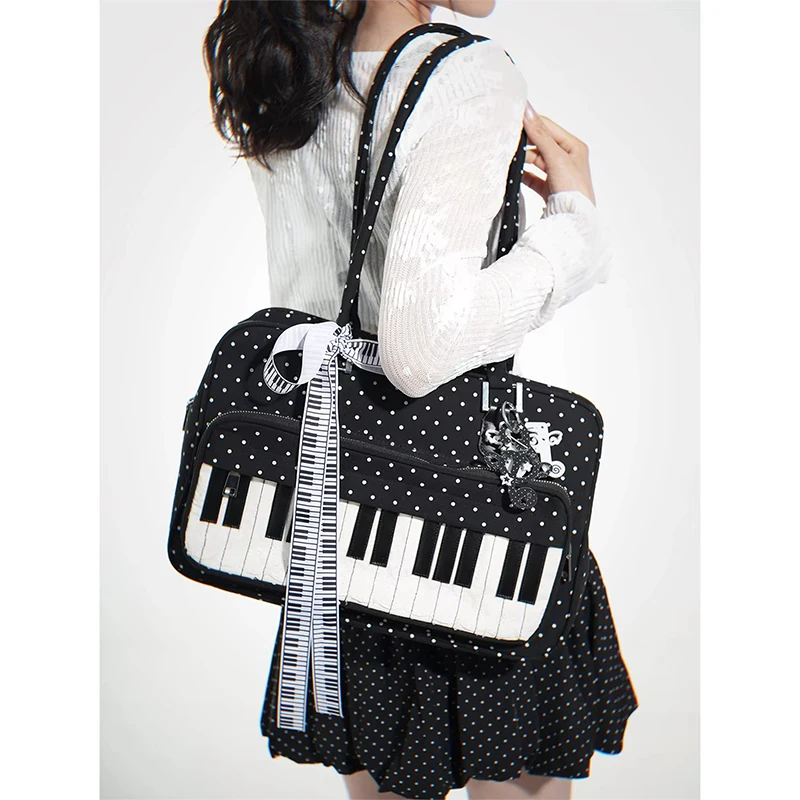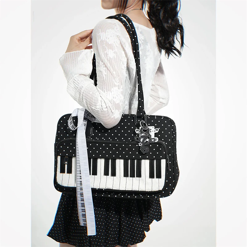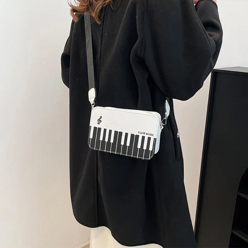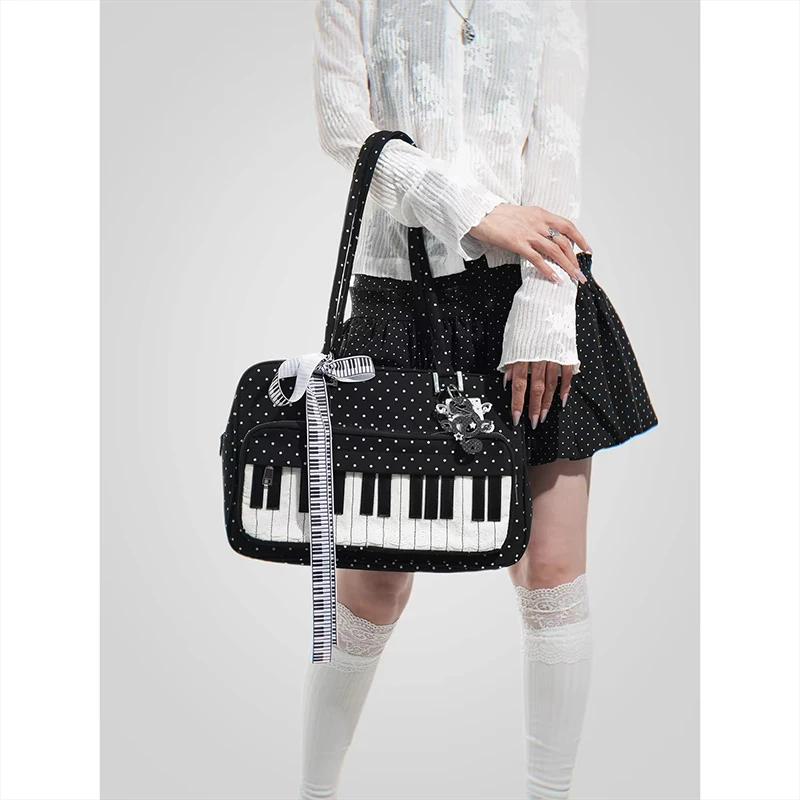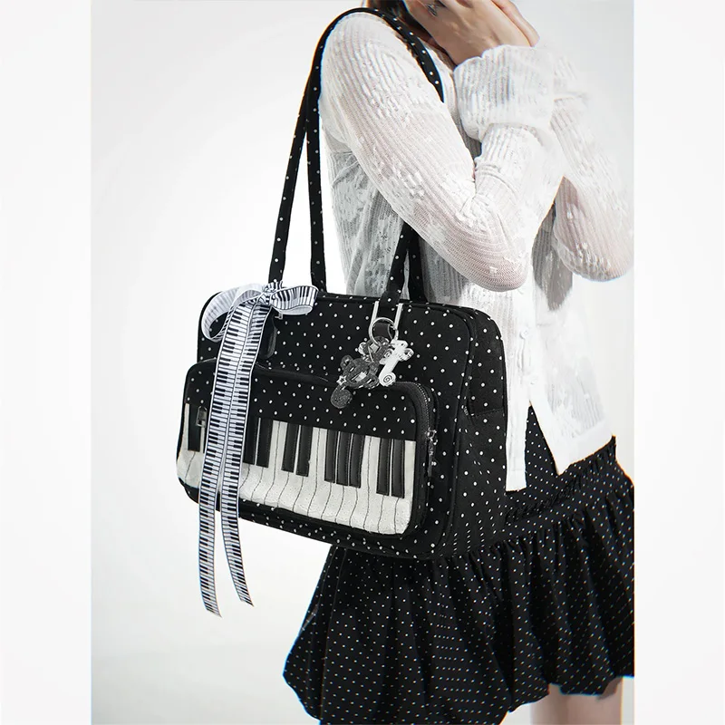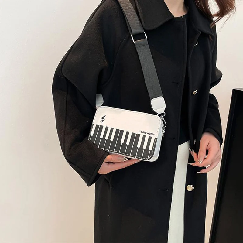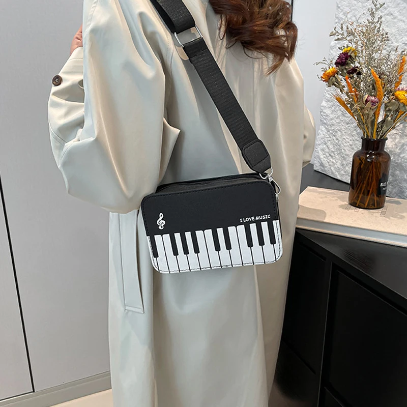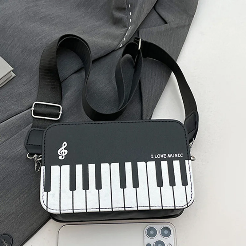 Fashion Contrast Color Handbag Creative Polka Dot Piano Note Small Square Bag Flip Zipper Shoulder Bag Y2k Style Crossbody Bag