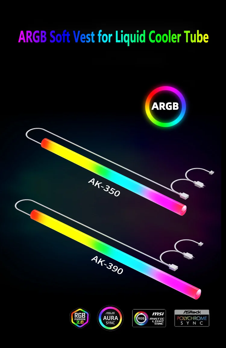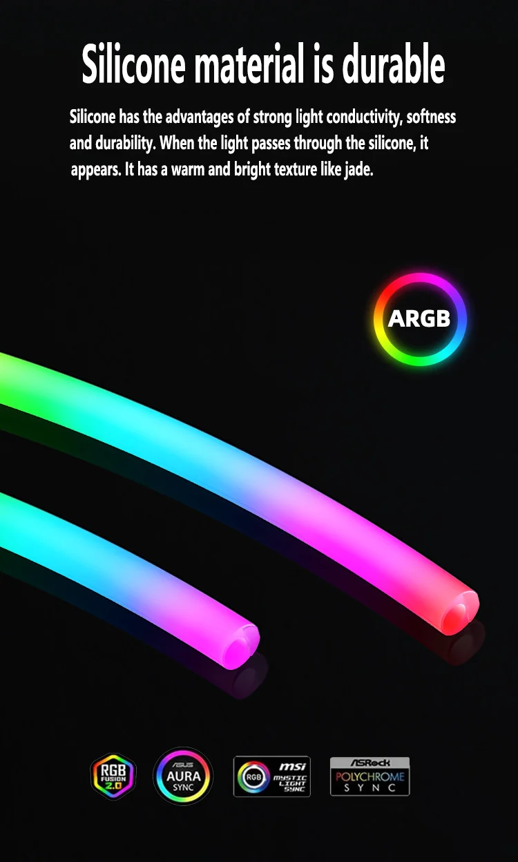 Flexible 5V Addressable ARGB Neon Tube Light with Cover Sleeve for Gaming PC AIO 120 240 360 CPU Water Liquid Cooler Retrofit