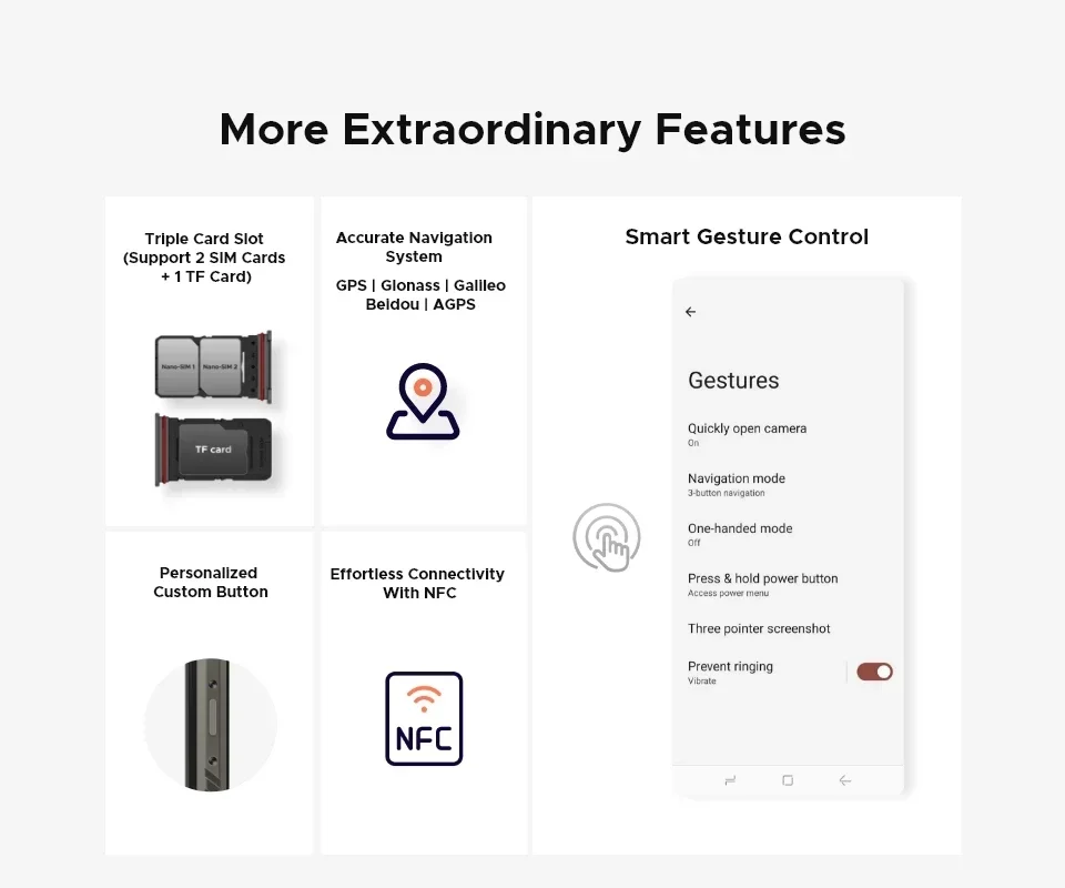 Triple Card Slot (Support 2 SIM Cards + 1 TF Card)