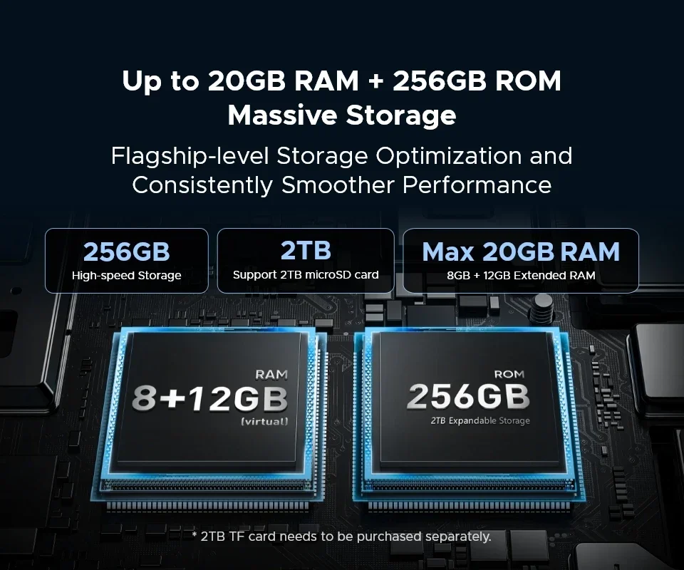 Up to 20GB RAM + 256GB ROM Massive Storage