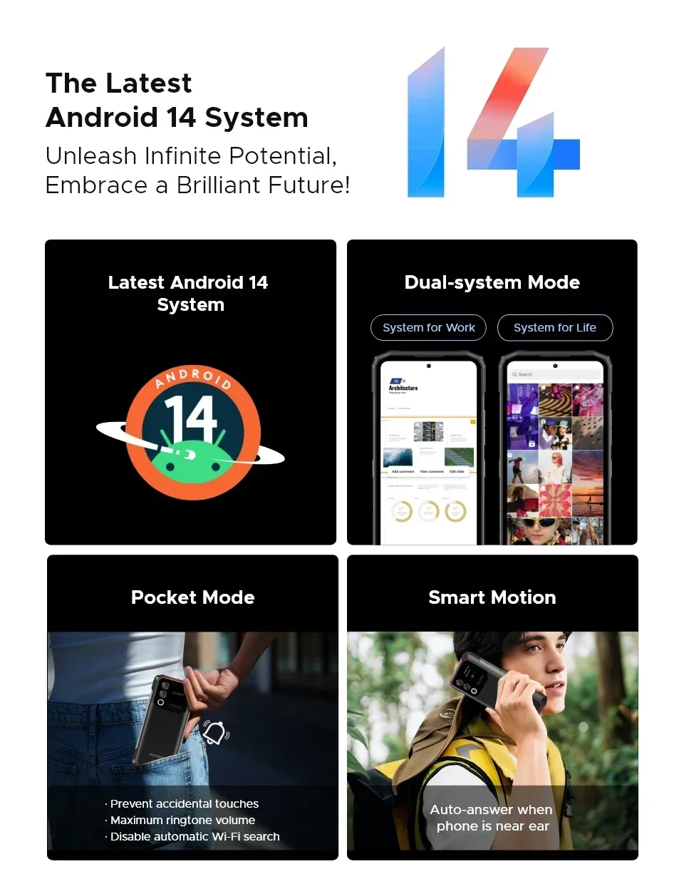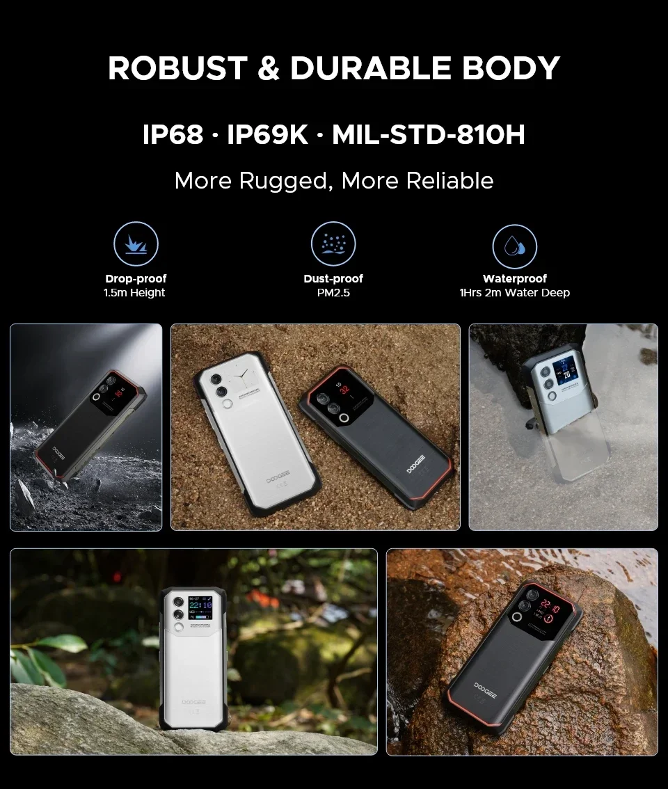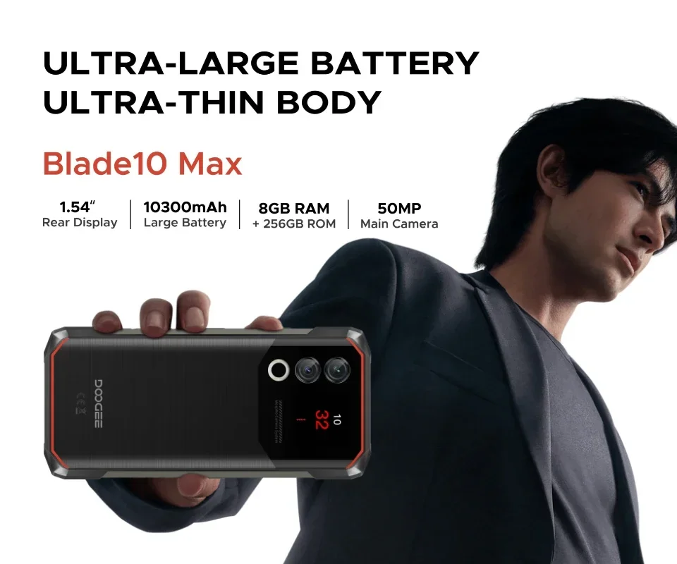 Global Version DOOGEE Blade10 Max Rugged Phone 6.56" 8GB +256GB 50MP AI Main Camera 1.54" Rear Display 10300mAh Android 14 NFC