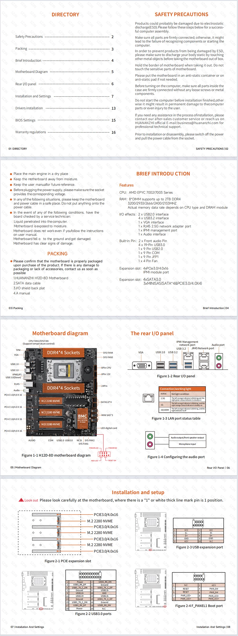 HUANANZHI H12D-8D Motherboard Set EPYC Server Kit with IPMI AMD EPYC 7002 7003 Series CPU 8 Channel Memory Dual 2.5G Network