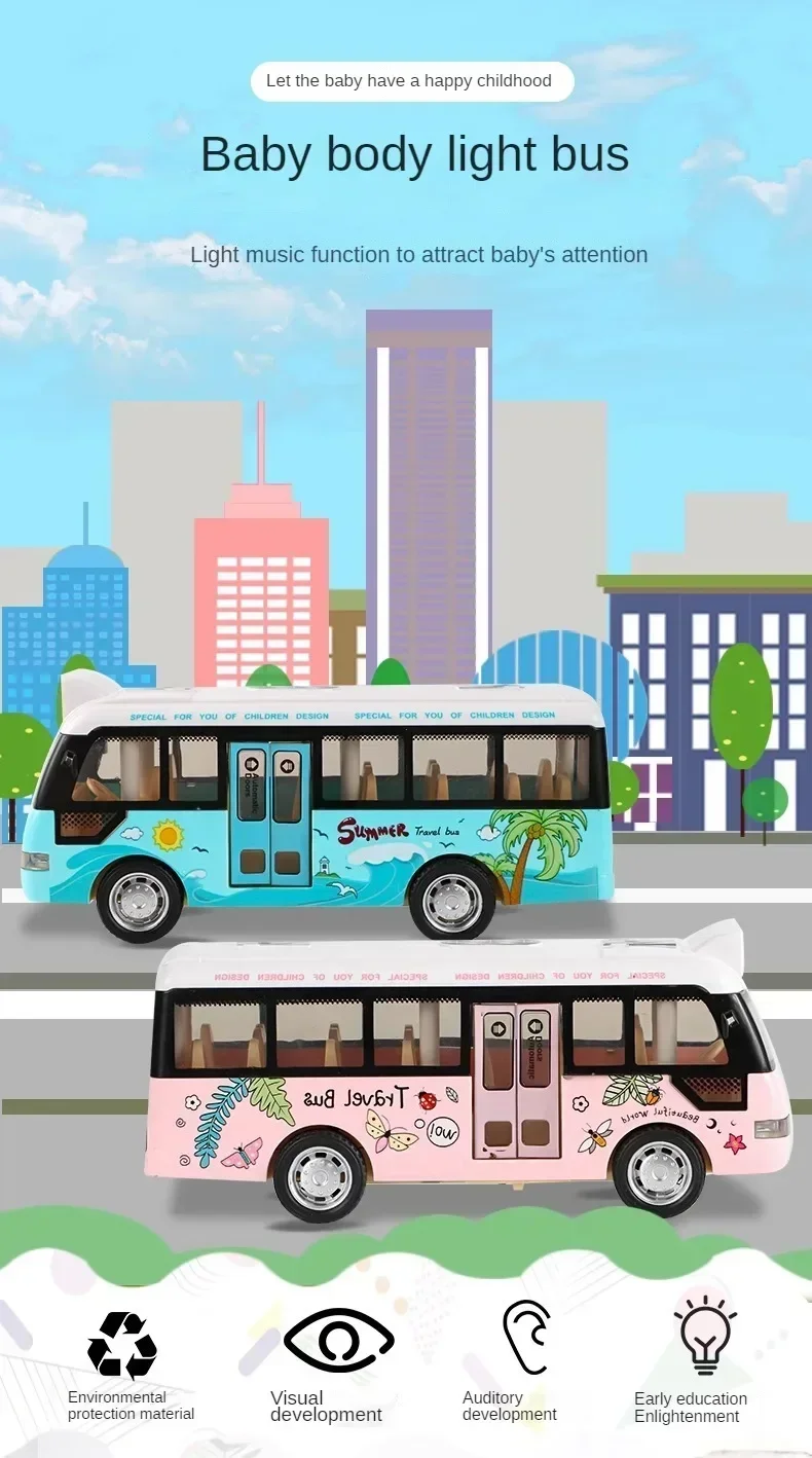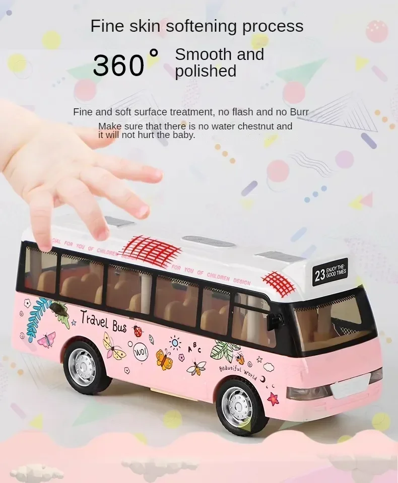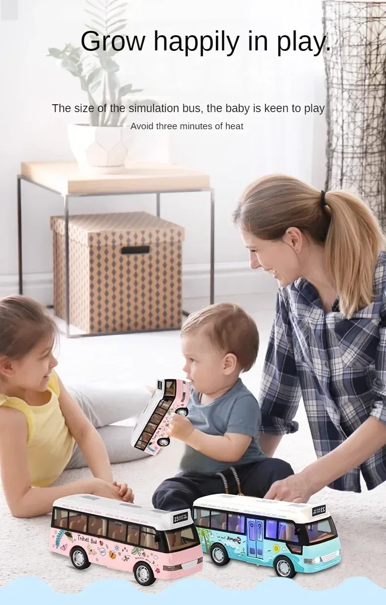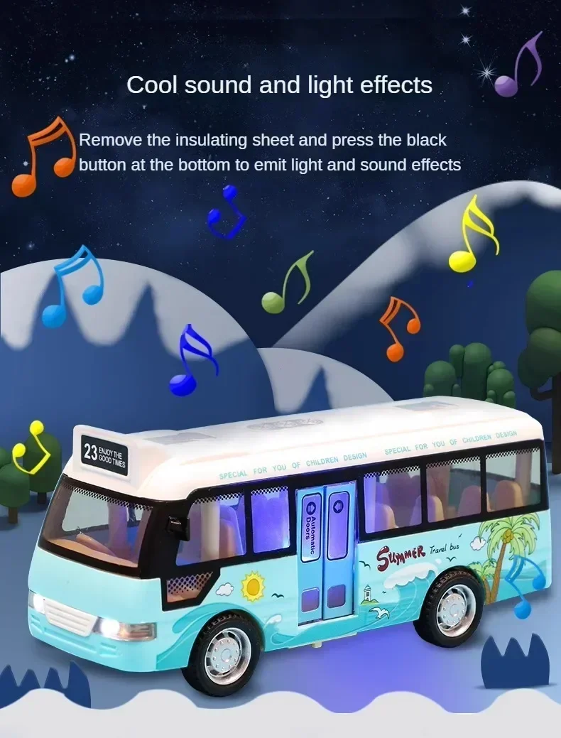 Interactive Die Cast Metal School Bus Toy with Sound Light Friction Powered Play Vehicle Gifts for Kids' Fun Imaginative Play
