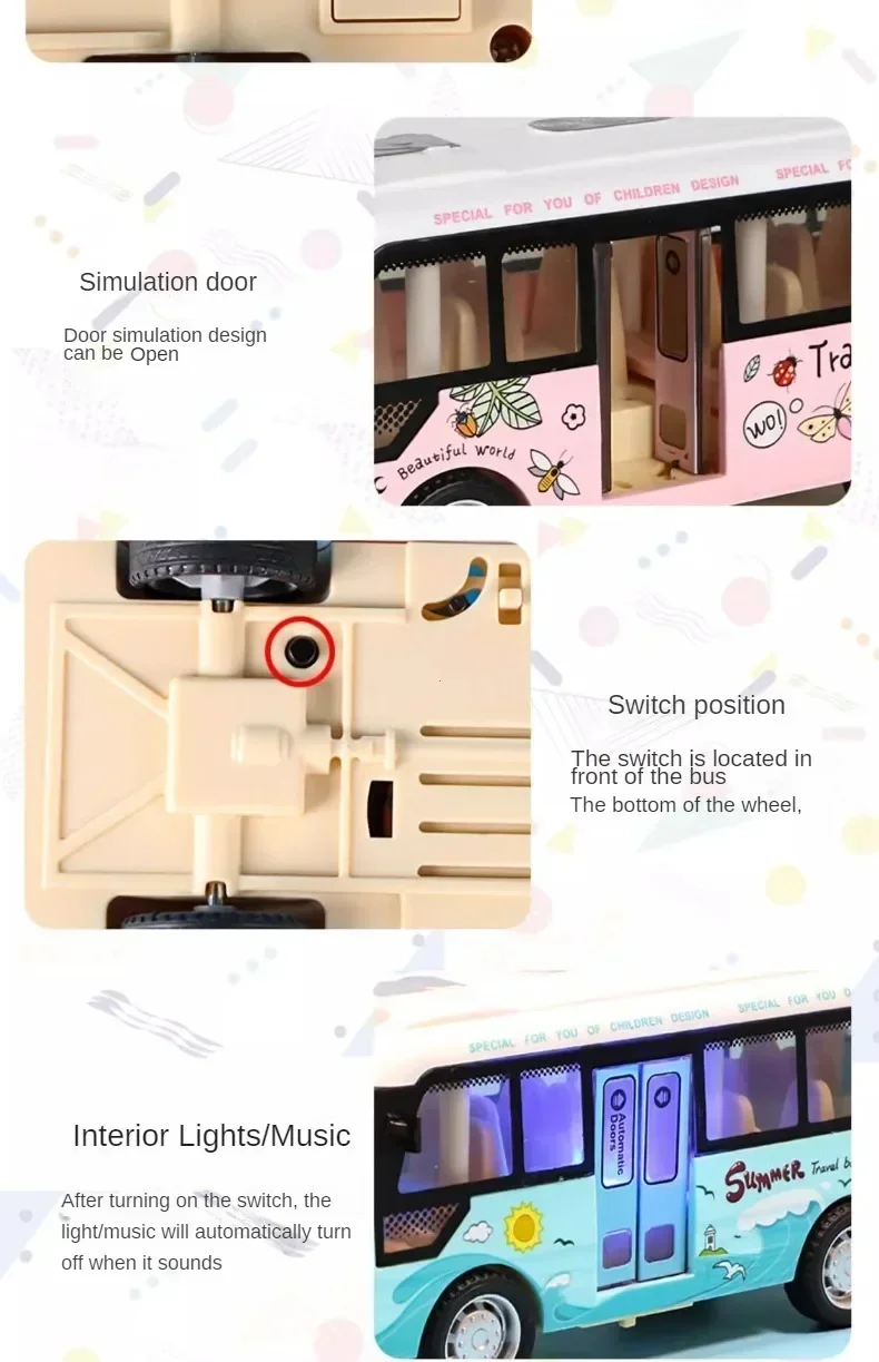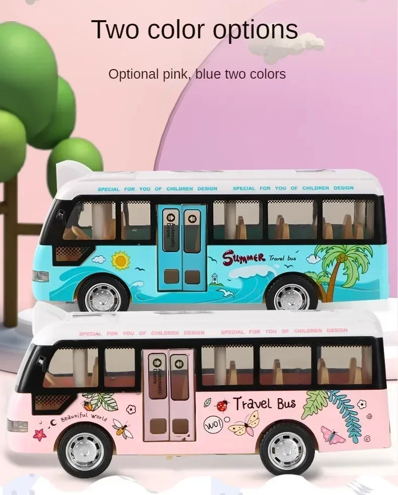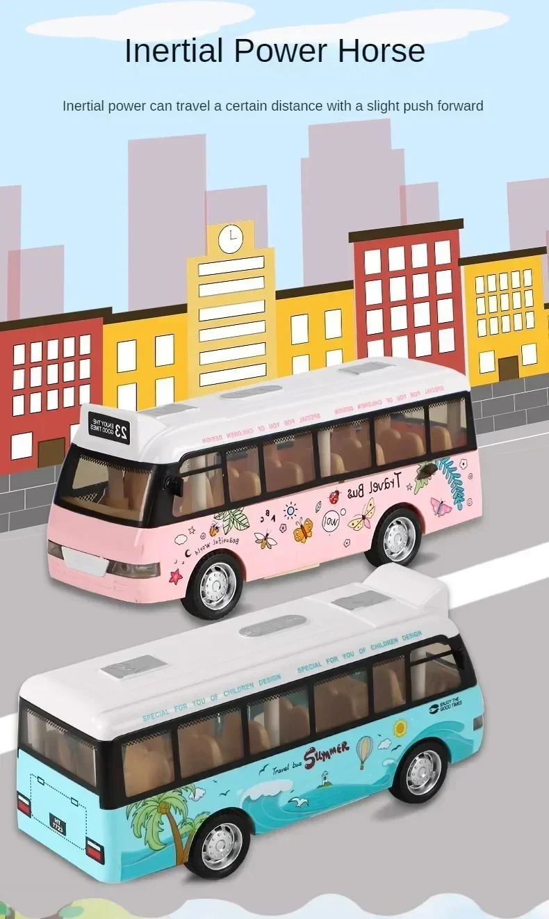 Interactive Die Cast Metal School Bus Toy with Sound Light Friction Powered Play Vehicle Gifts for Kids' Fun Imaginative Play