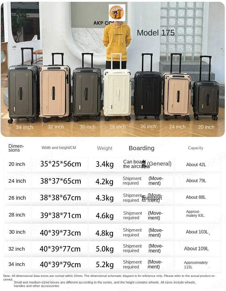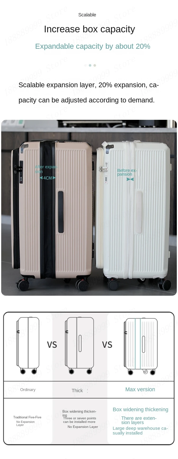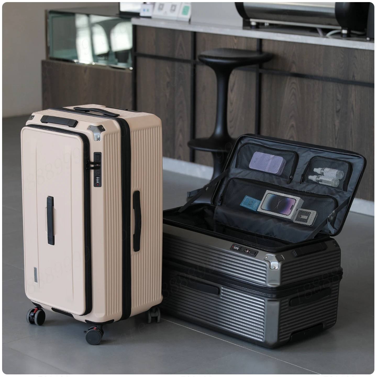 Large Capacity PC Material Suitcase 20/28/32/34-inch Deep-Compartment Travel Luggage with Combination Lock Side-Open Hard Shell