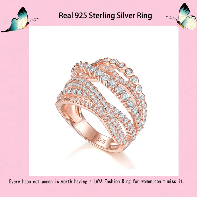LAYA 925 Sterling Silver Multi-Line AAAAA Shining Zircon OL Style Ring For Women's Wedding High Quality Fashion Luxury Jewelry