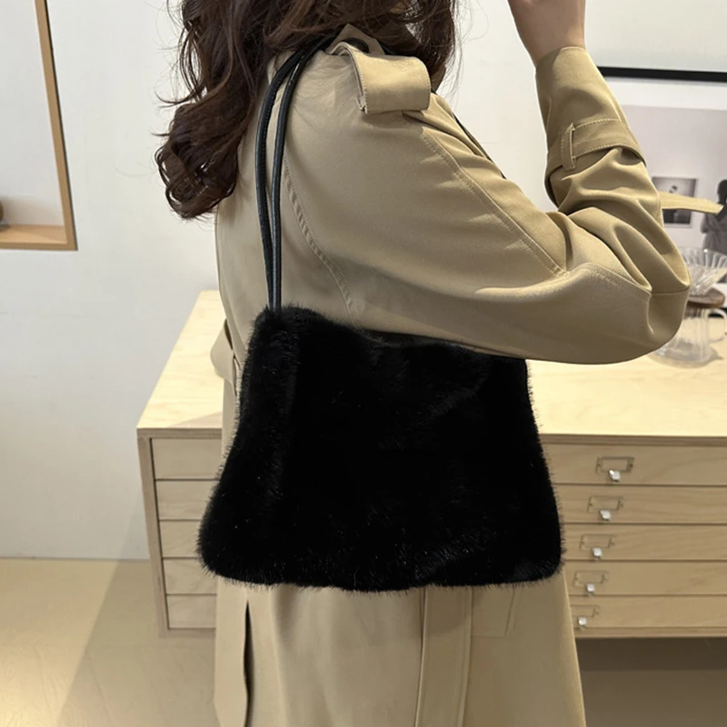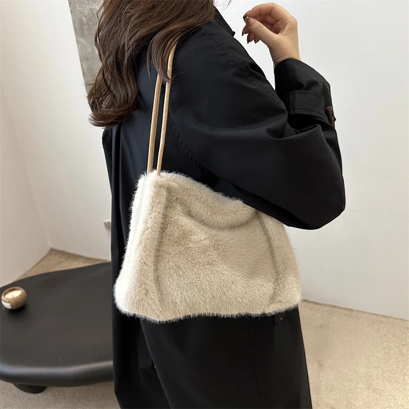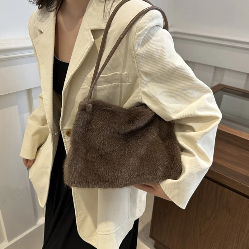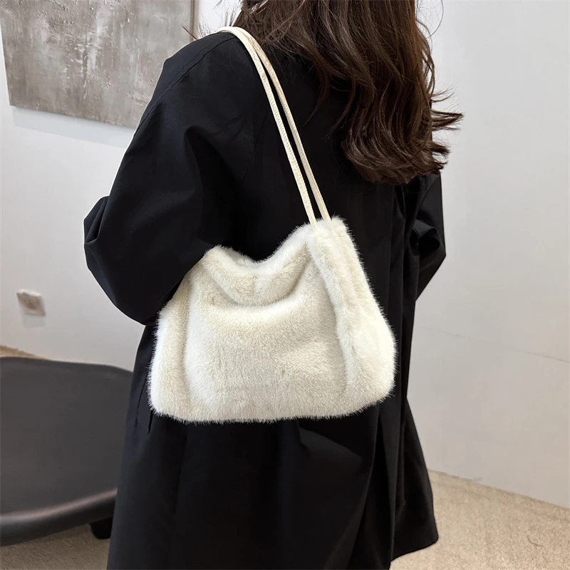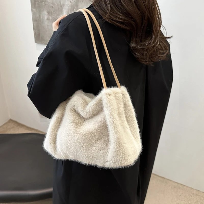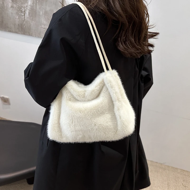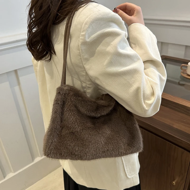 Plush Large-capacity Bag Women's Autumn and Winter New Simple Shoulder Underarm Bag Fashionable Fluff Bucket Handbag