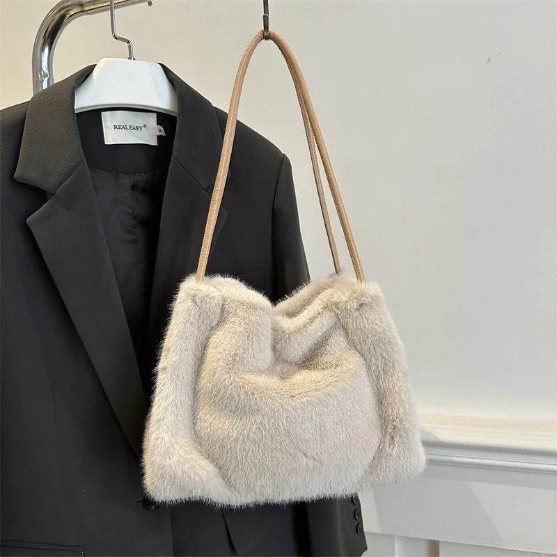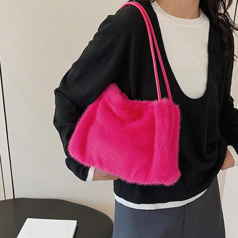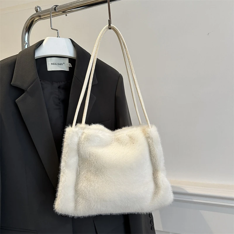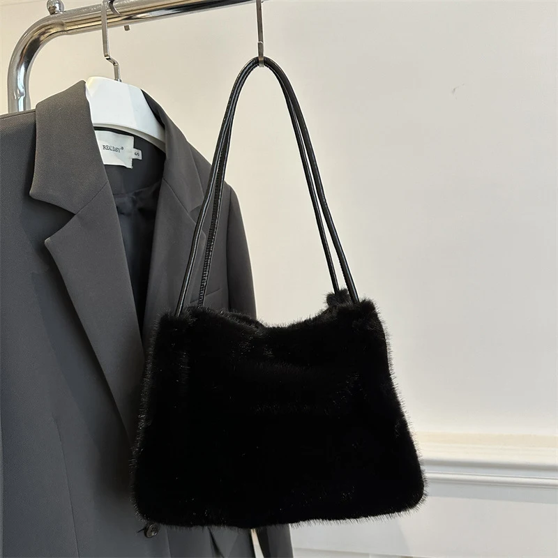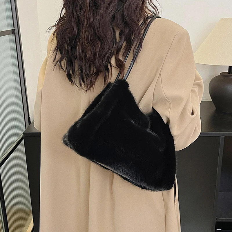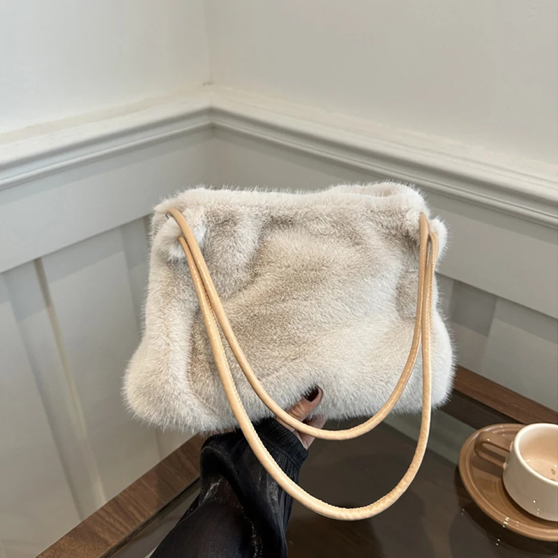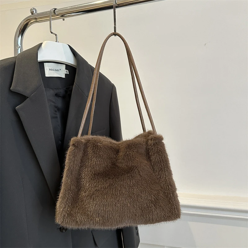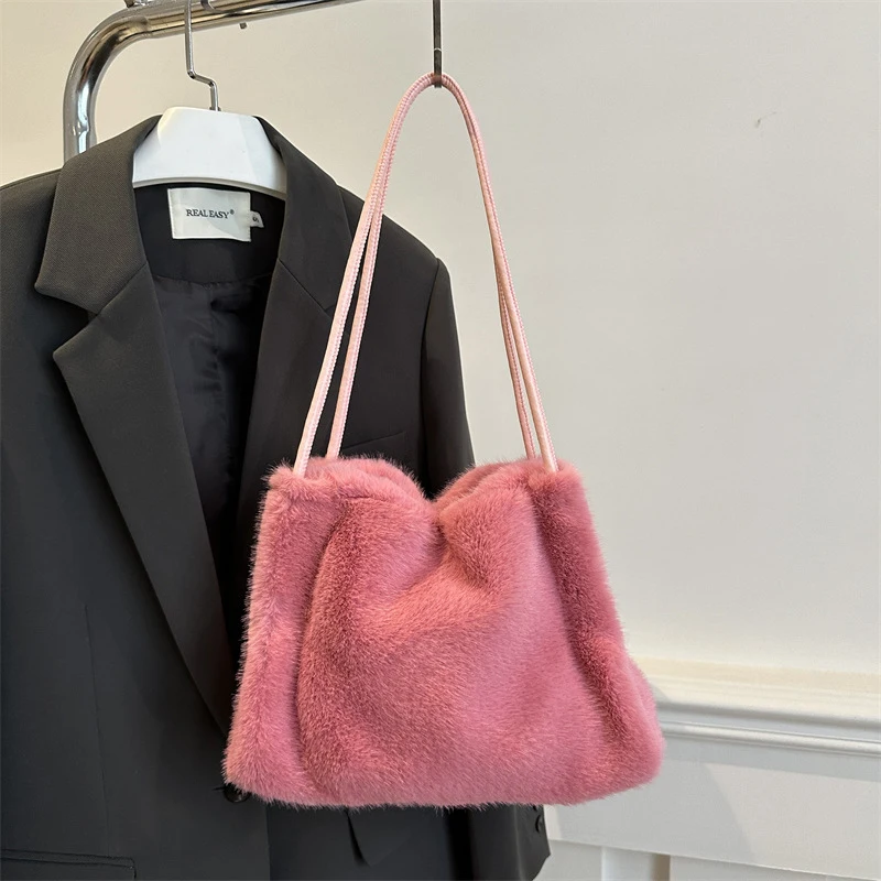 Plush Large-capacity Bag Women's Autumn and Winter New Simple Shoulder Underarm Bag Fashionable Fluff Bucket Handbag