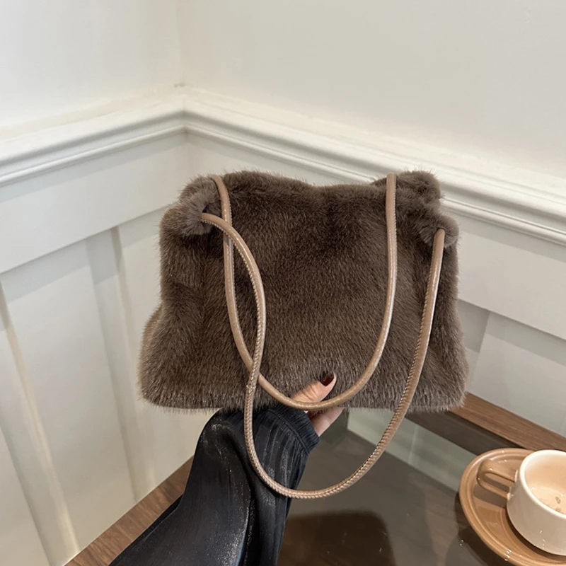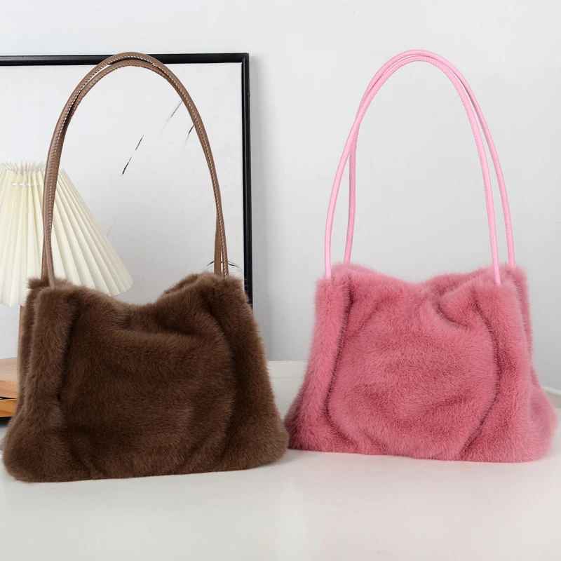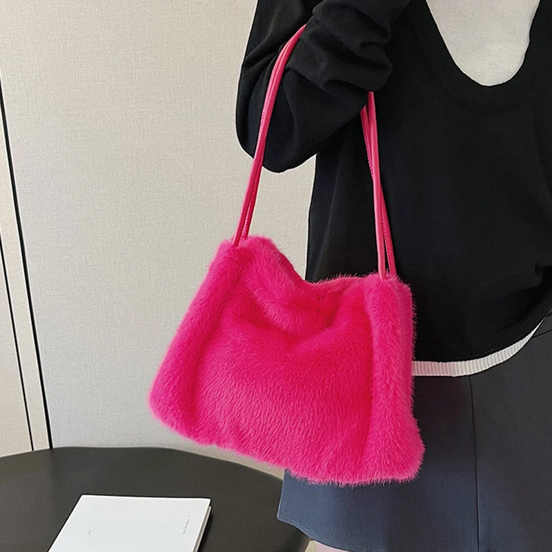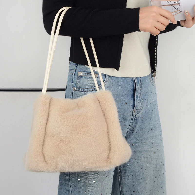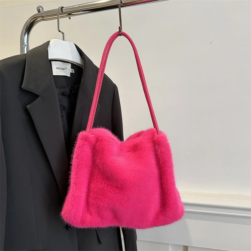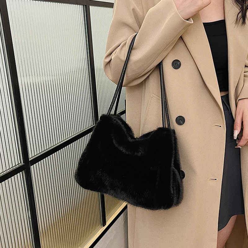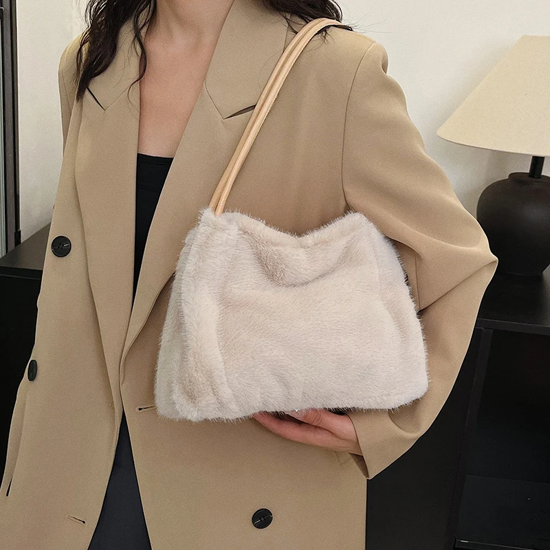 Plush Large-capacity Bag Women's Autumn and Winter New Simple Shoulder Underarm Bag Fashionable Fluff Bucket Handbag