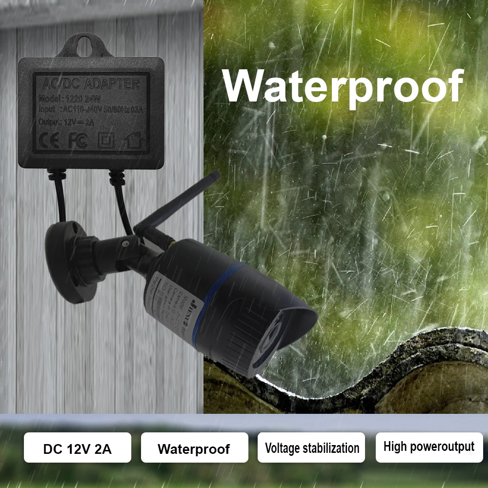 This power adapter is waterproof, making it suitable for use in damp environments like basements and outdoor security cameras.