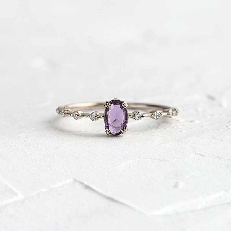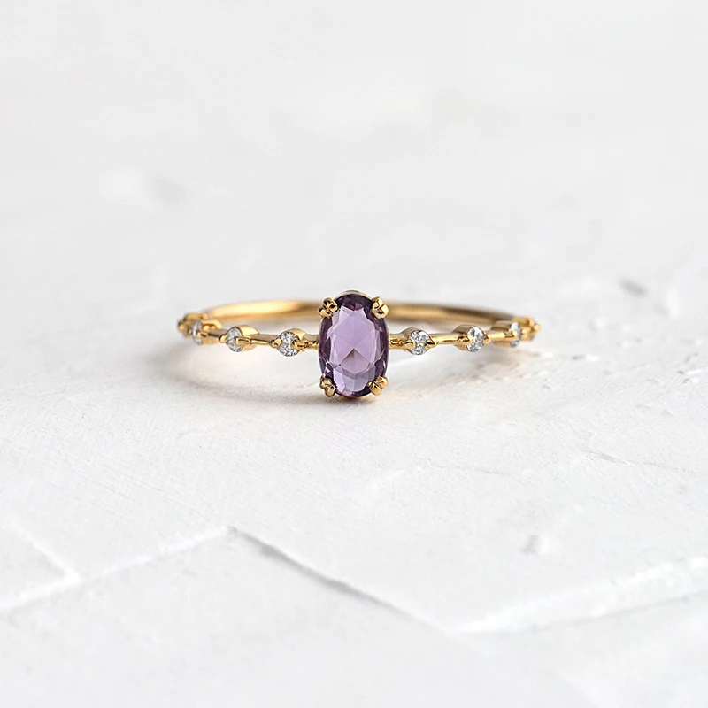 Romantic 18K Gold Plated Purple Crystal Ring for Women - Luxury Fashion Wedding Engagement Jewelry Gift in Sizes 6 7 8