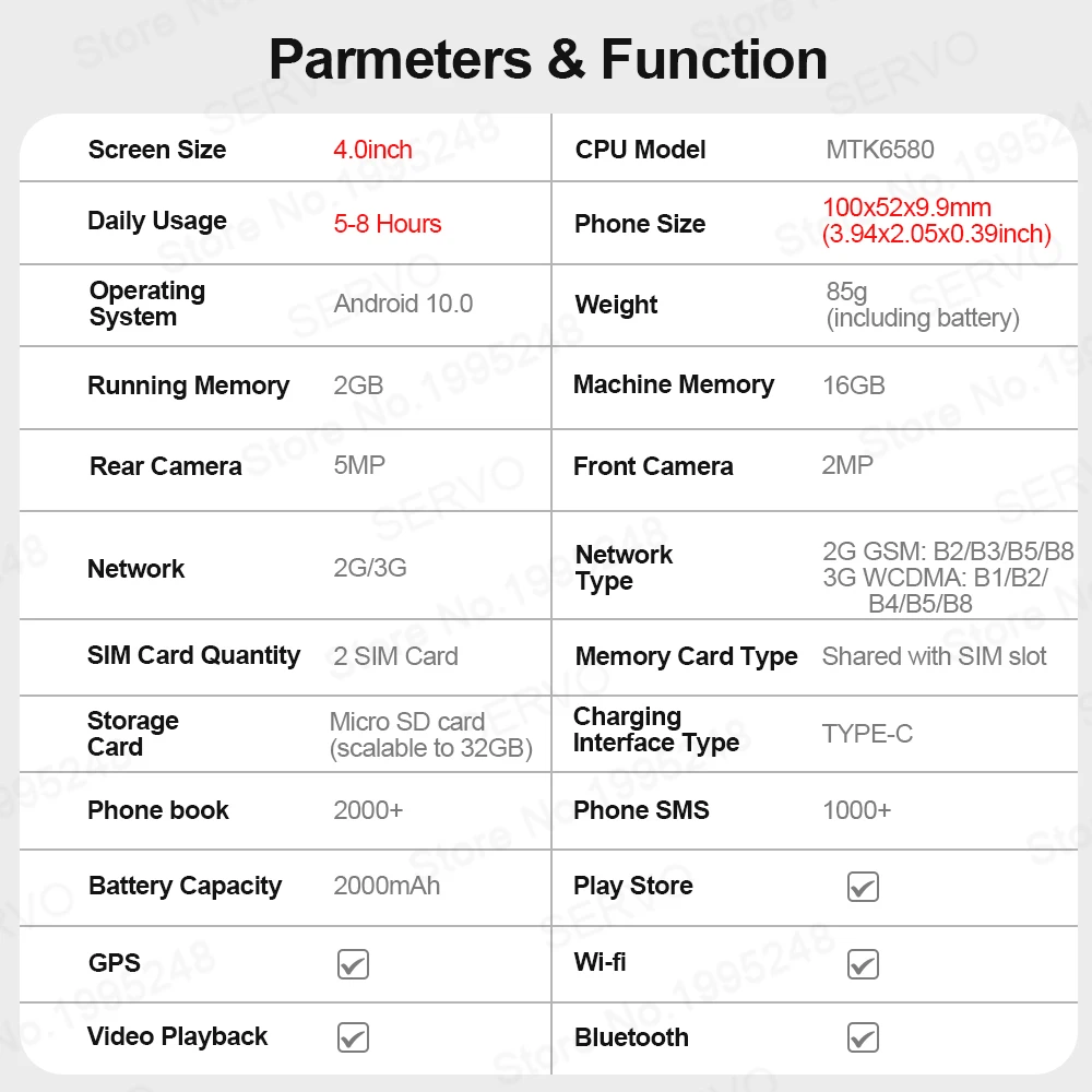 SERVO Mini Android Smartphone Dual SIM RAM 2GB ROM 16GB 3G WCDMA Play Store WiFi Hotspot Face Unlock 4.0" Small Size Smart Phone