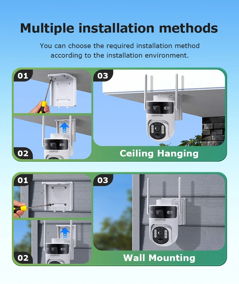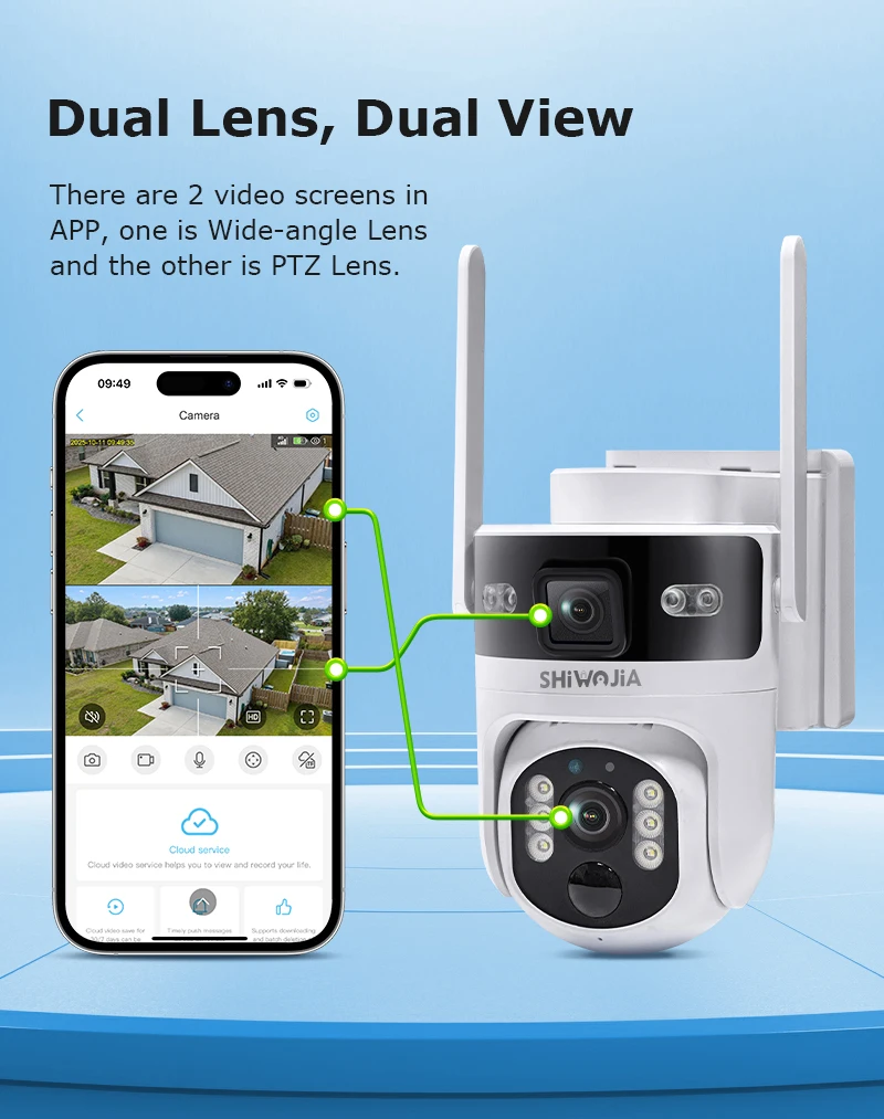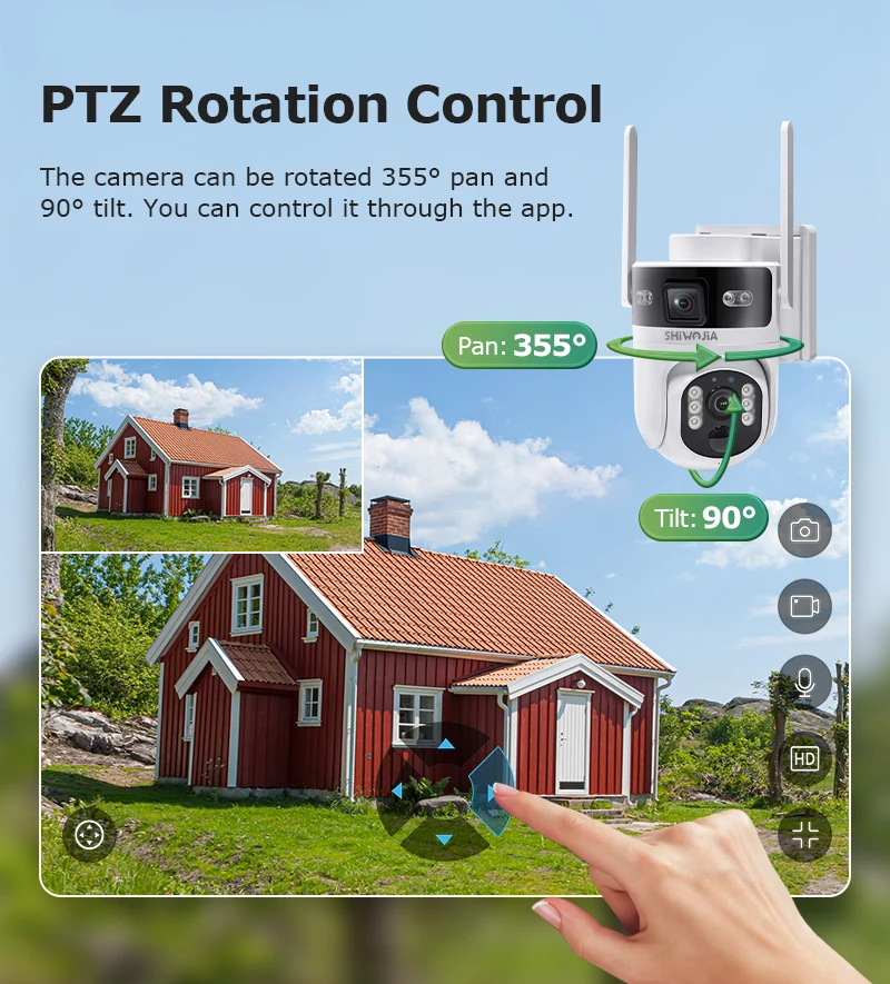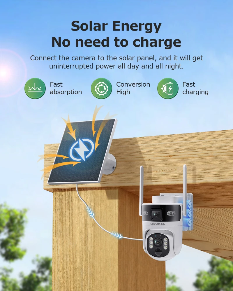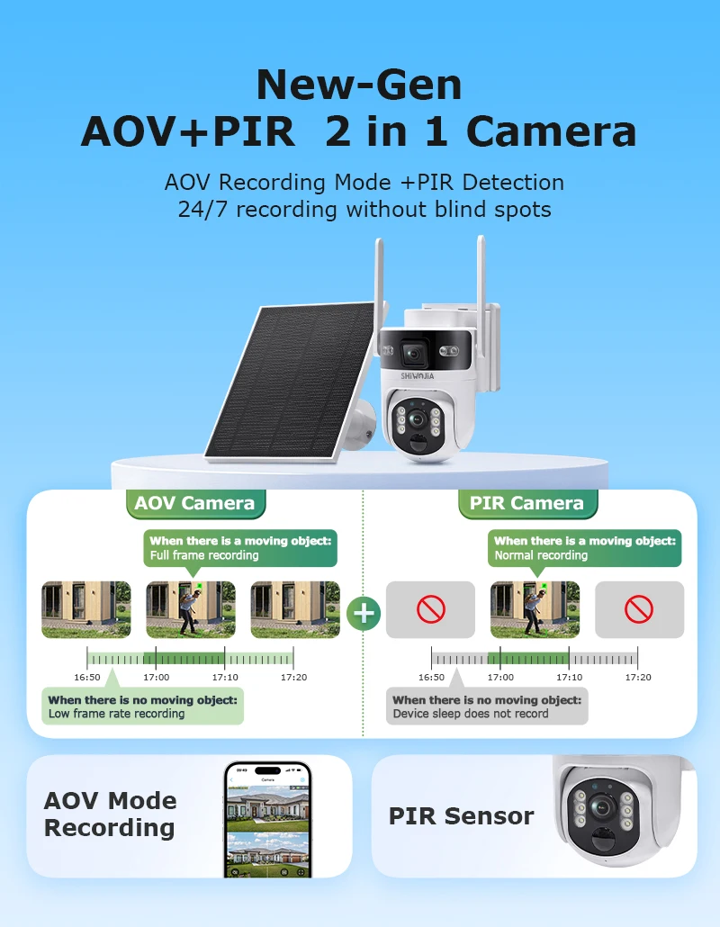 SHIWOJIA 8MP AOV Solar Battery Camera 4G SIM 7/24 Hours Recording Wireless WIFI Security PTZ Camera Dual Lens PIR Night Vision UBOXPRO APP