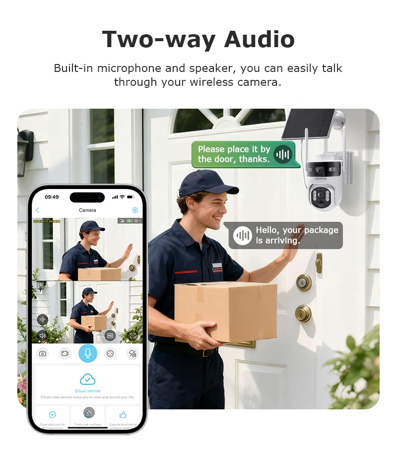 Built-in microphone and speaker, you can easily talk through your wireless camera.