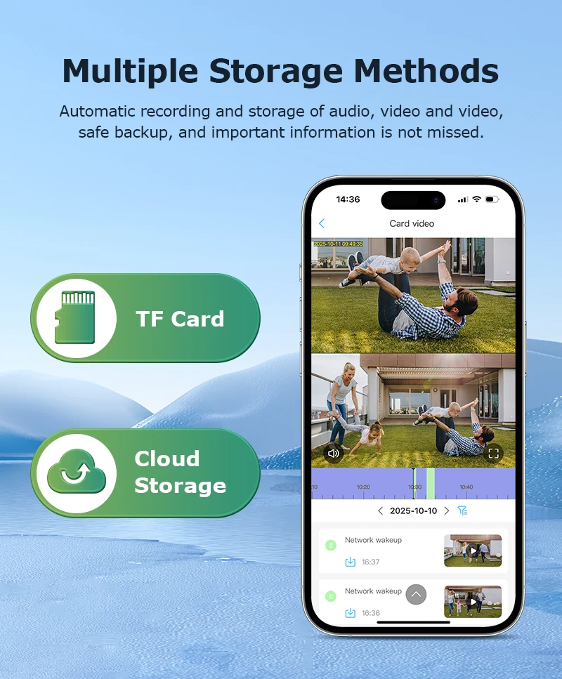 When there is a moving object, the camera will wake up, Automatic recording and app information reminder.
