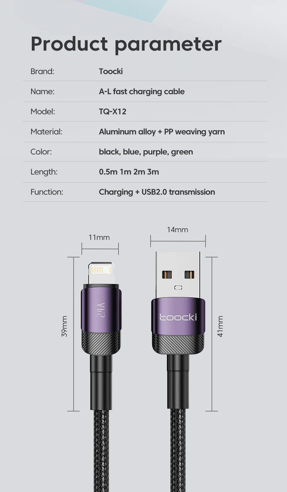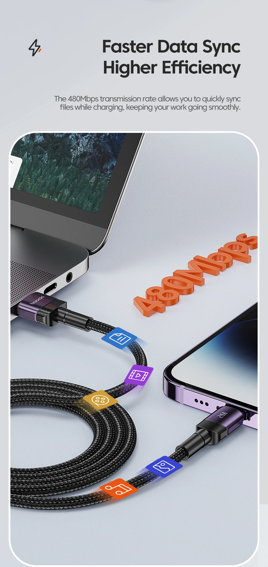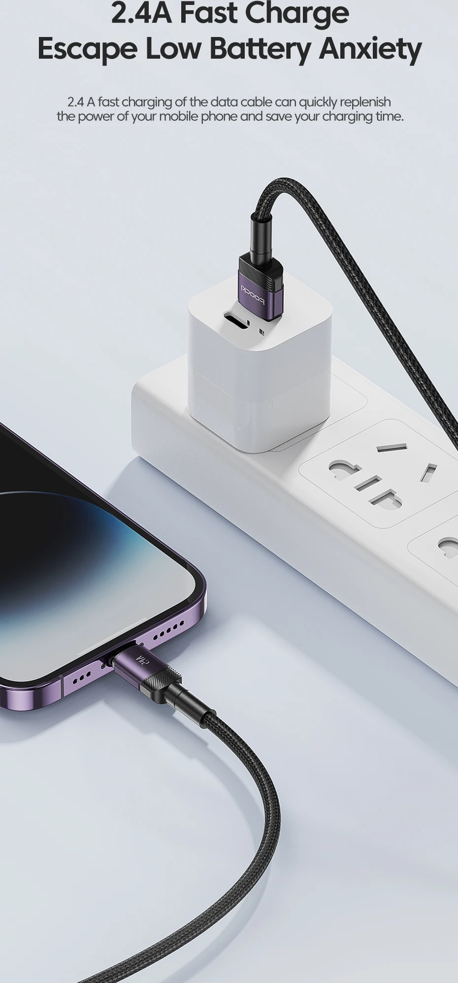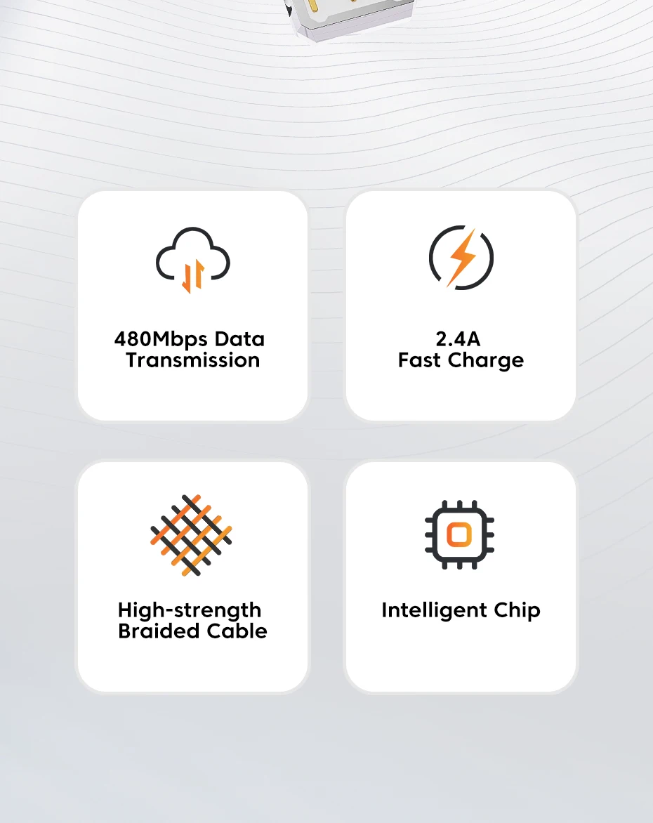 2.4A Fast Charge, High-strength Braided Cable, 480Mbps Data Transmission, Intelligent Chip