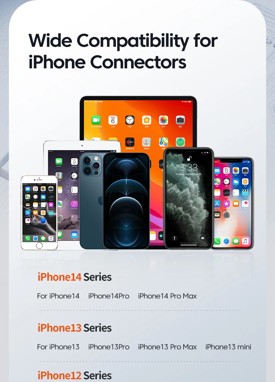• Fast Charging :Charge your iPhone quickly with a maximum current of 2.4A.