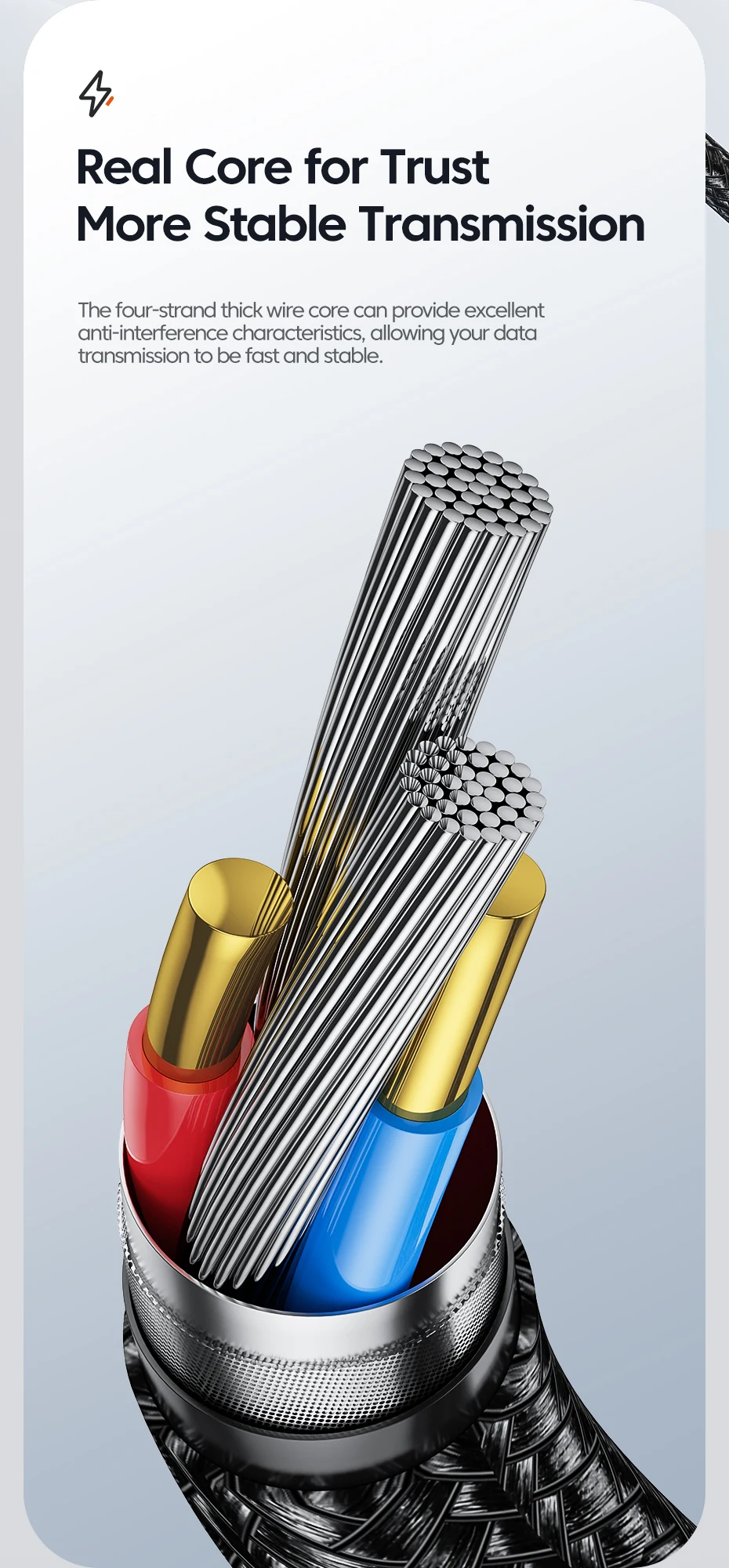 Real Core for Trust More Stable Transmission The four-strand thick wire core can provide excellent anti-interference characteristics,allowing your data transmission to be fast and stable