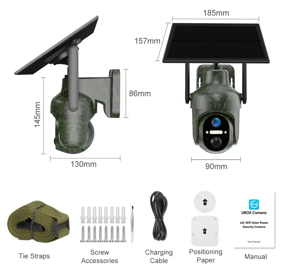 2. Global 4G Connectivity with Smart PTZ Coverage: Equipped with a region-specific 4G module (customized for different countries), the camera ensures reliable cellular connectivity worldwide. Paired with its 270° pan and 100° tilt capabilities, users can remotely control the camera’s field of view via the UBox app for live viewing, playback, and real-time monitoring. This allows comprehensive area coverage (e.g., large yards or perimeters) from anywhere, eliminating Wi-Fi dependency and providing flexibility in deployment.
