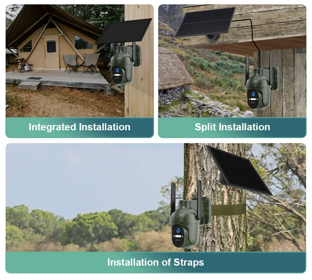 1. True Off-Grid Operation with Solar Power & High-Capacity Battery: The camera features a 6W solar panel with a 3m extension cable and a built-in 10,400mAh rechargeable battery. This combination enables continuous, wire-free operation in remote locations without relying on grid power. The solar panel efficiently recharges the battery during daylight, supporting 24/7 functionality even in areas with no electrical infrastructure. This makes it ideal for construction sites, farms, or rural properties where traditional power sources are unavailable.