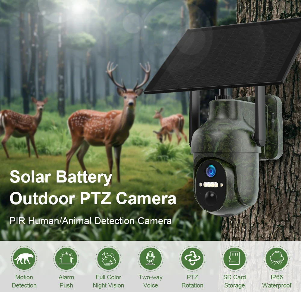 Ubox 4G SIM Outdoor Wildlife Camera 4MP Solar Hunting Trail Camera WiFi Security Camera Auto Tracking Night Vision PIR Detection