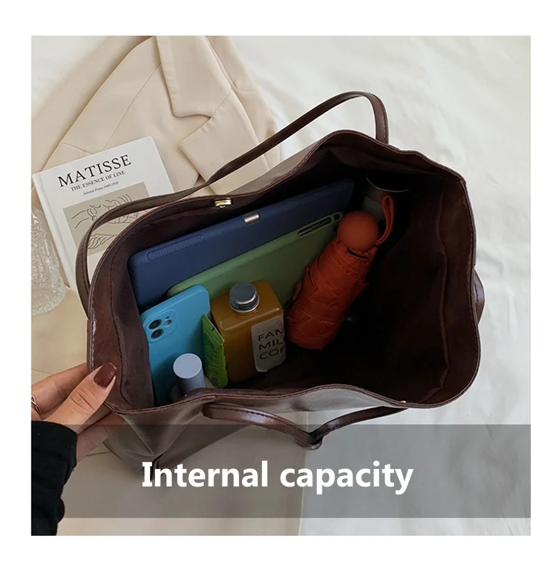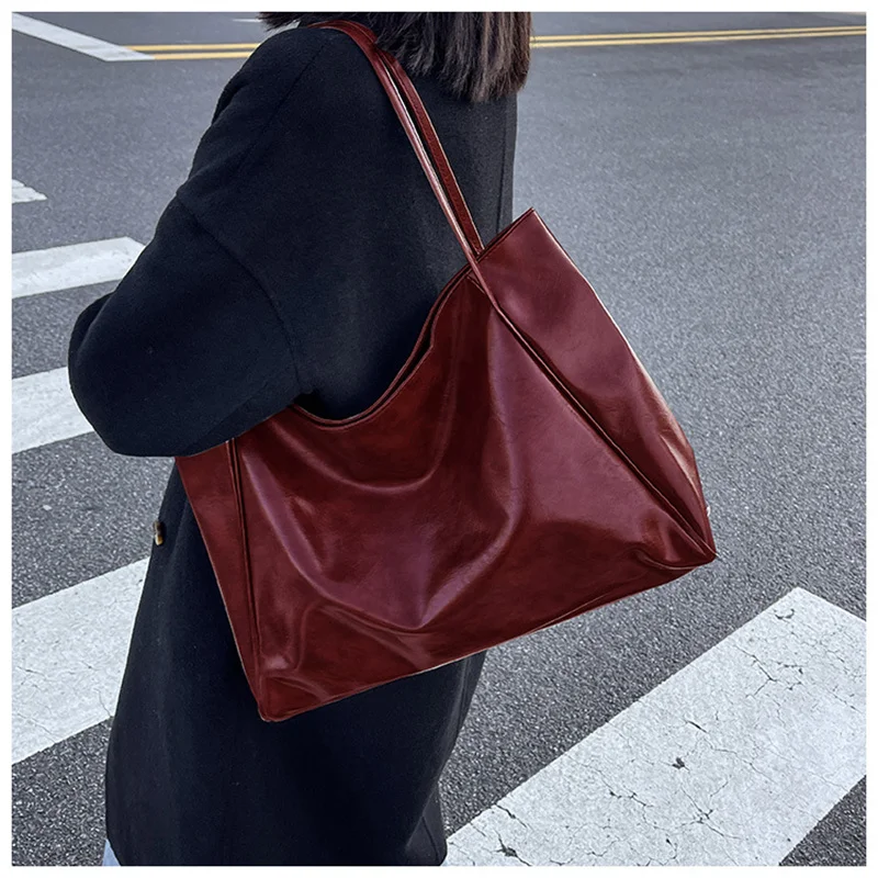 Women Tote Bag Fashion Underarm Pouch Large Capacity Soft Pu Leather Shoulder Bag Retro Crossbody Bag Casual Portable BucketBags