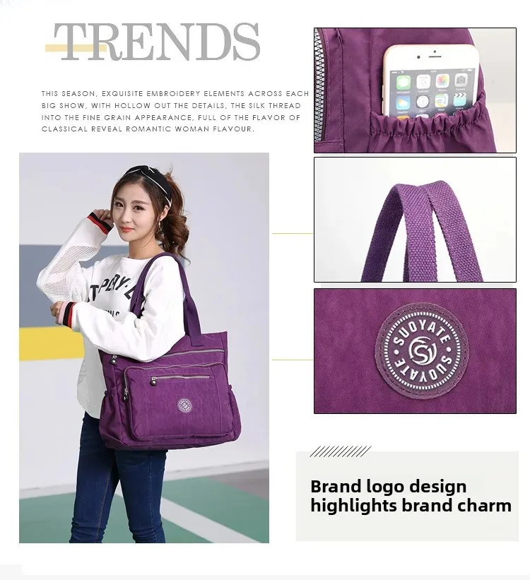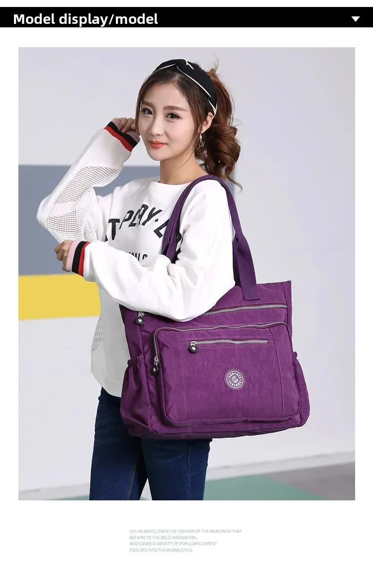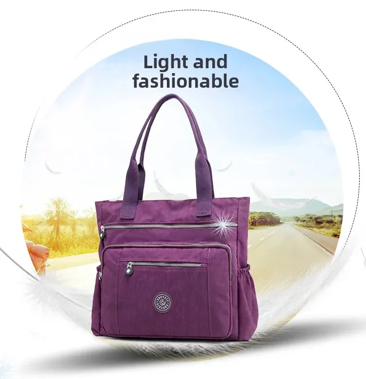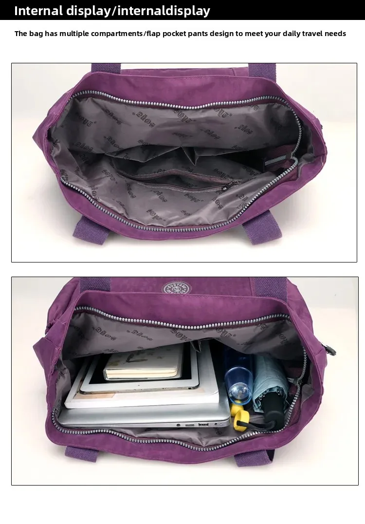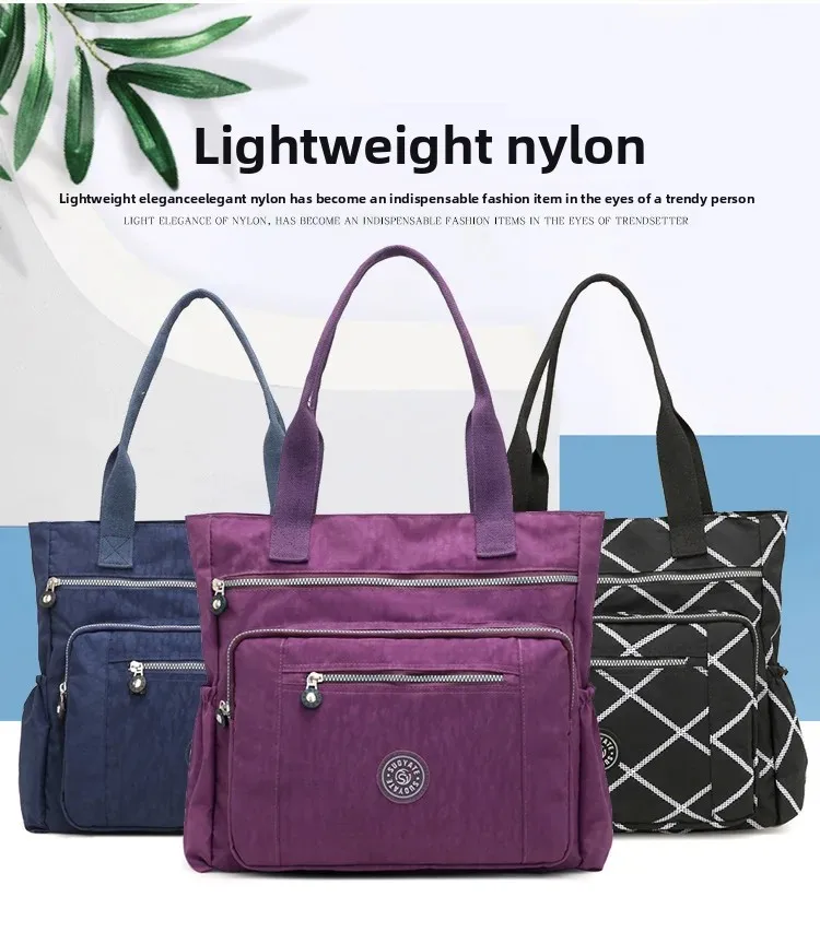 Women's Casual Lightweight Nylon Single Shoulder Bag Trendy Versatile Large Capacity Travel Handbag Soft Oxford Fabric Zipper