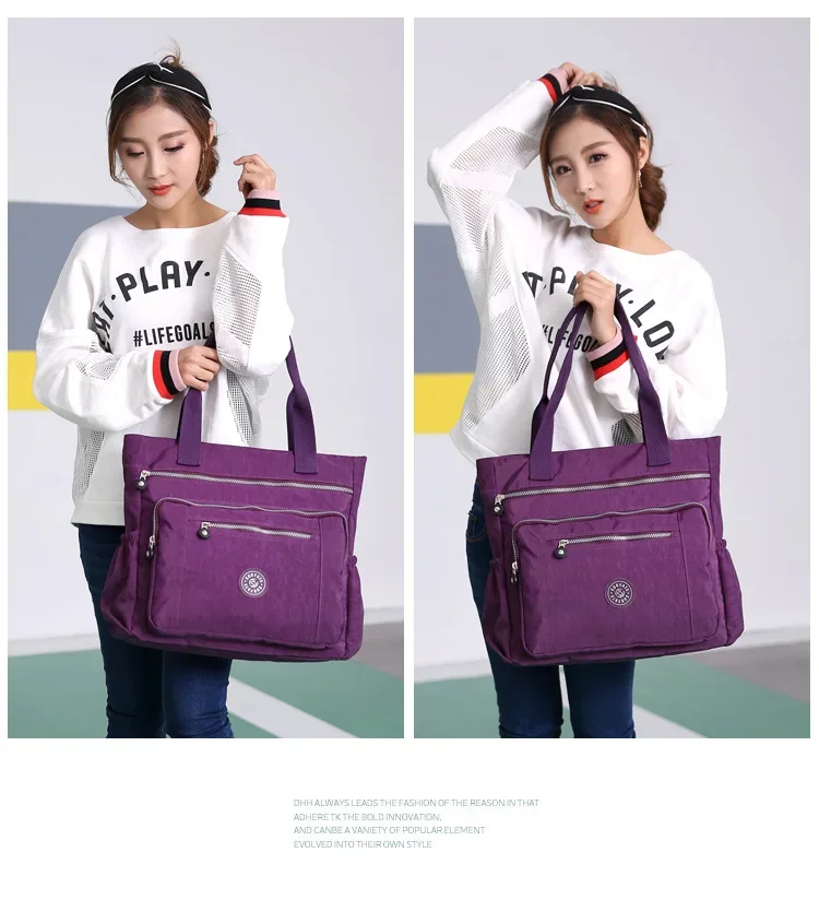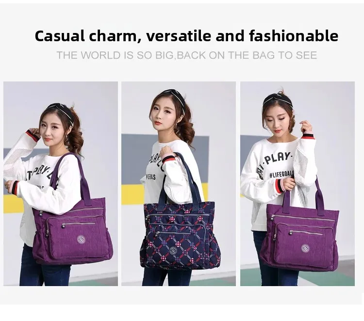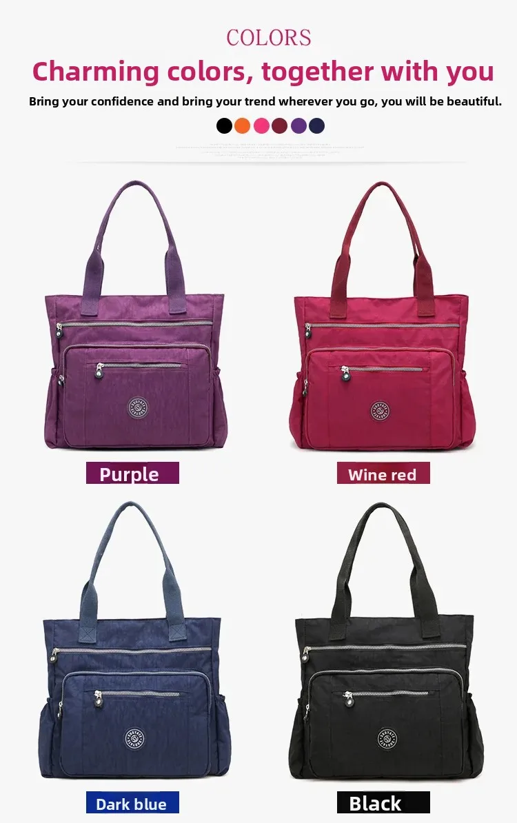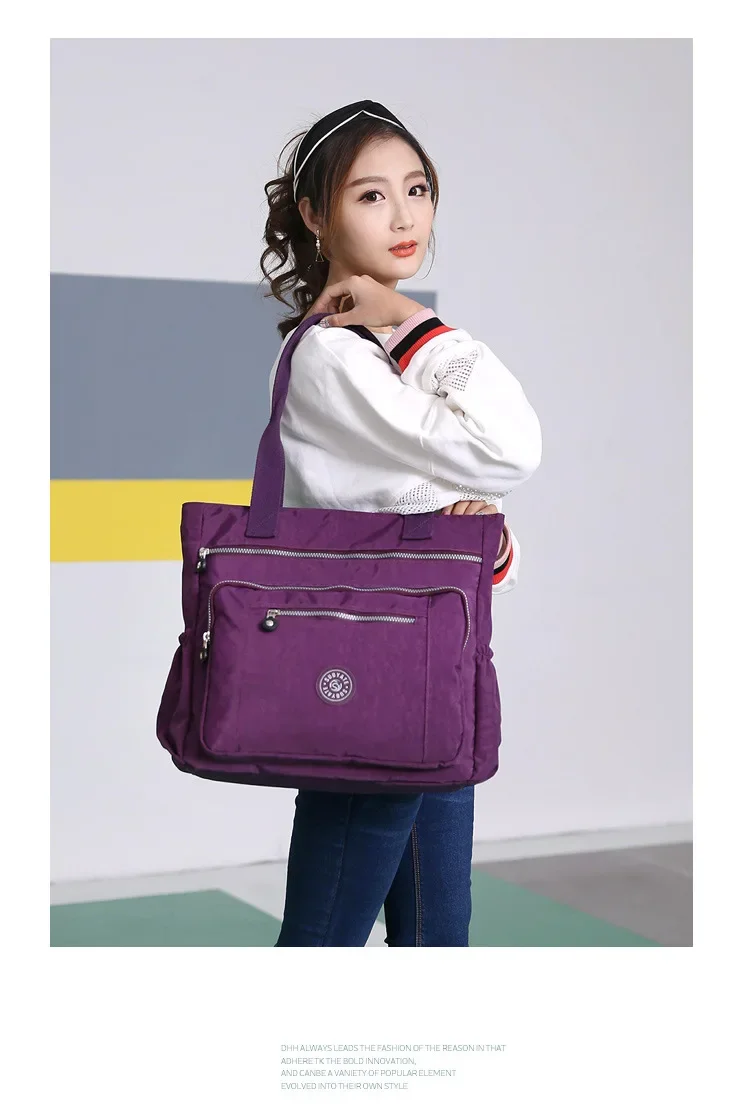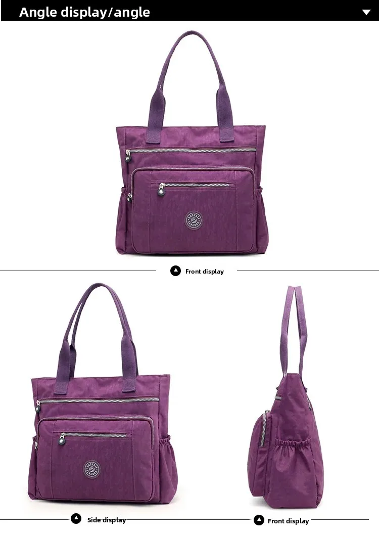 Women's Casual Lightweight Nylon Single Shoulder Bag Trendy Versatile Large Capacity Travel Handbag Soft Oxford Fabric Zipper