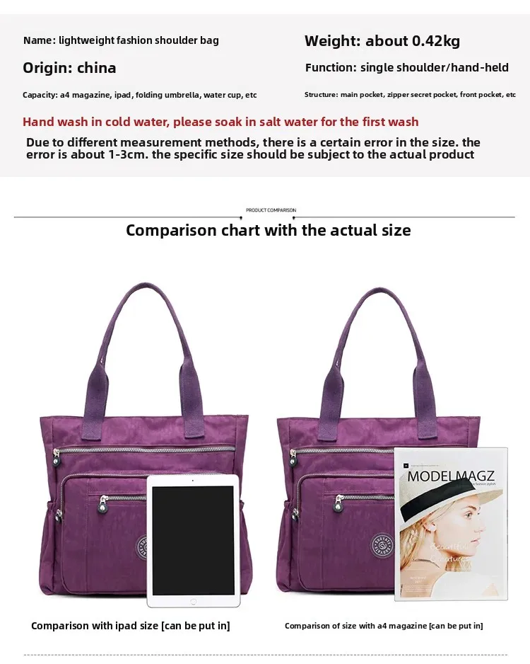 • Lightweight Nylon Material : Crafted from durable lightweight nylon, this shoulder bag offers a comfortable carry for daily use or travel.