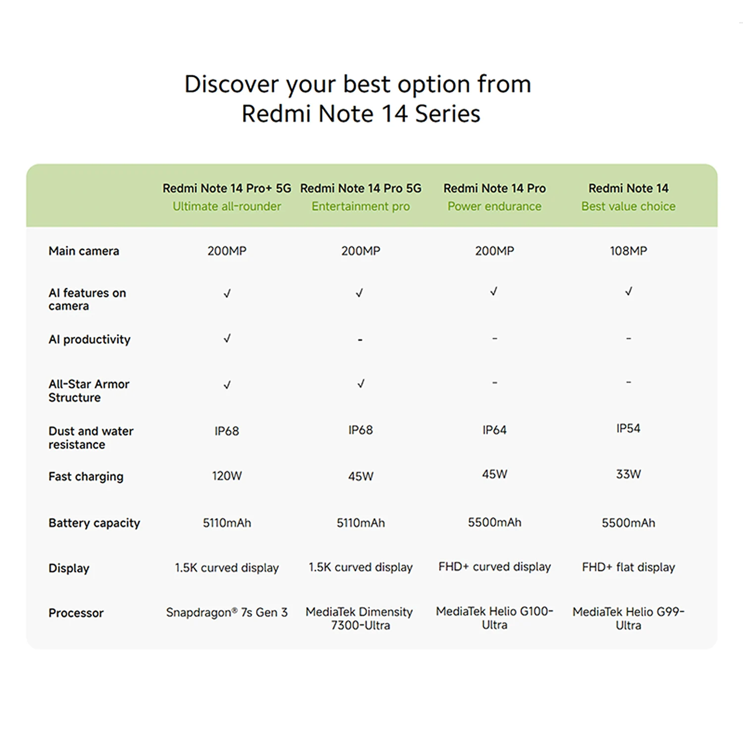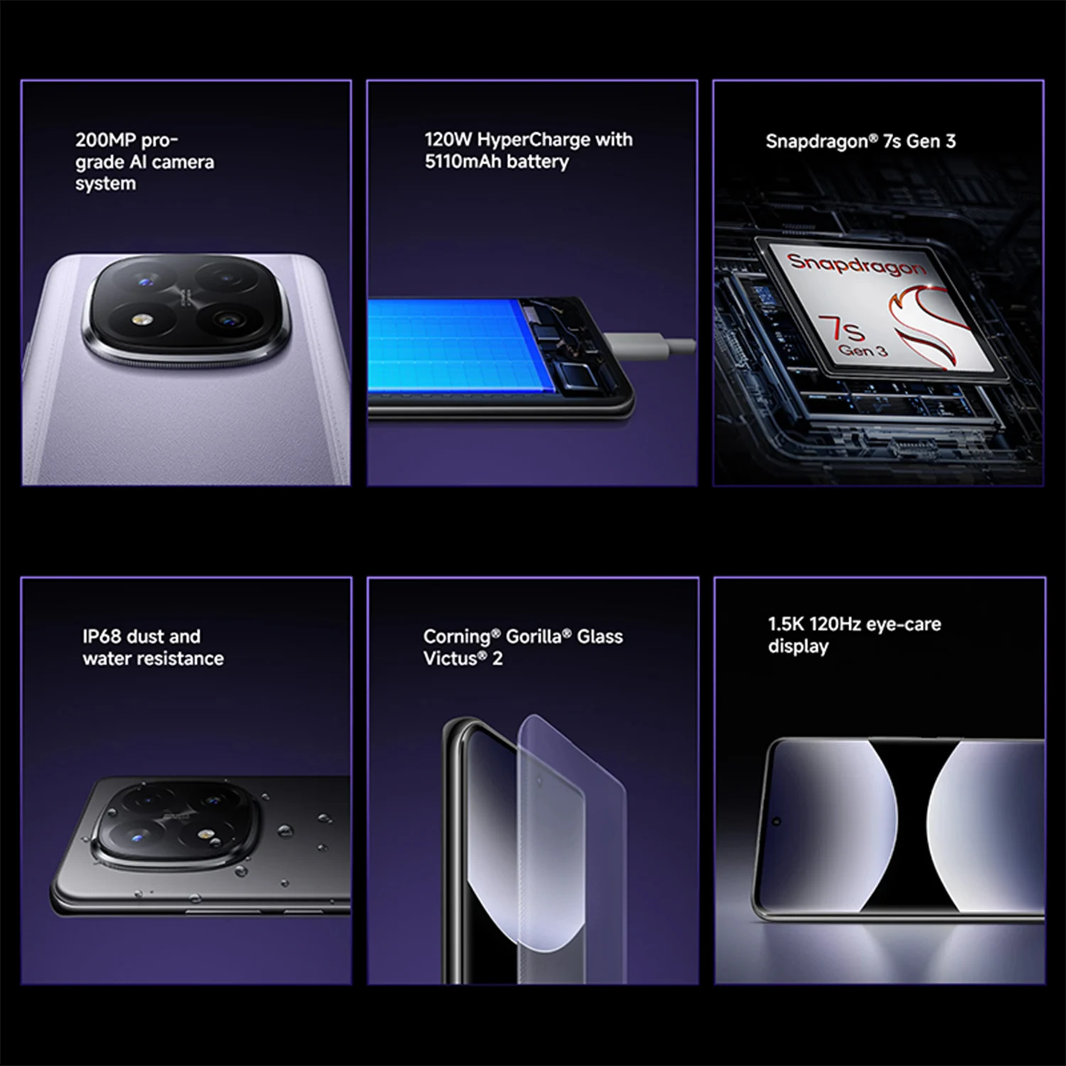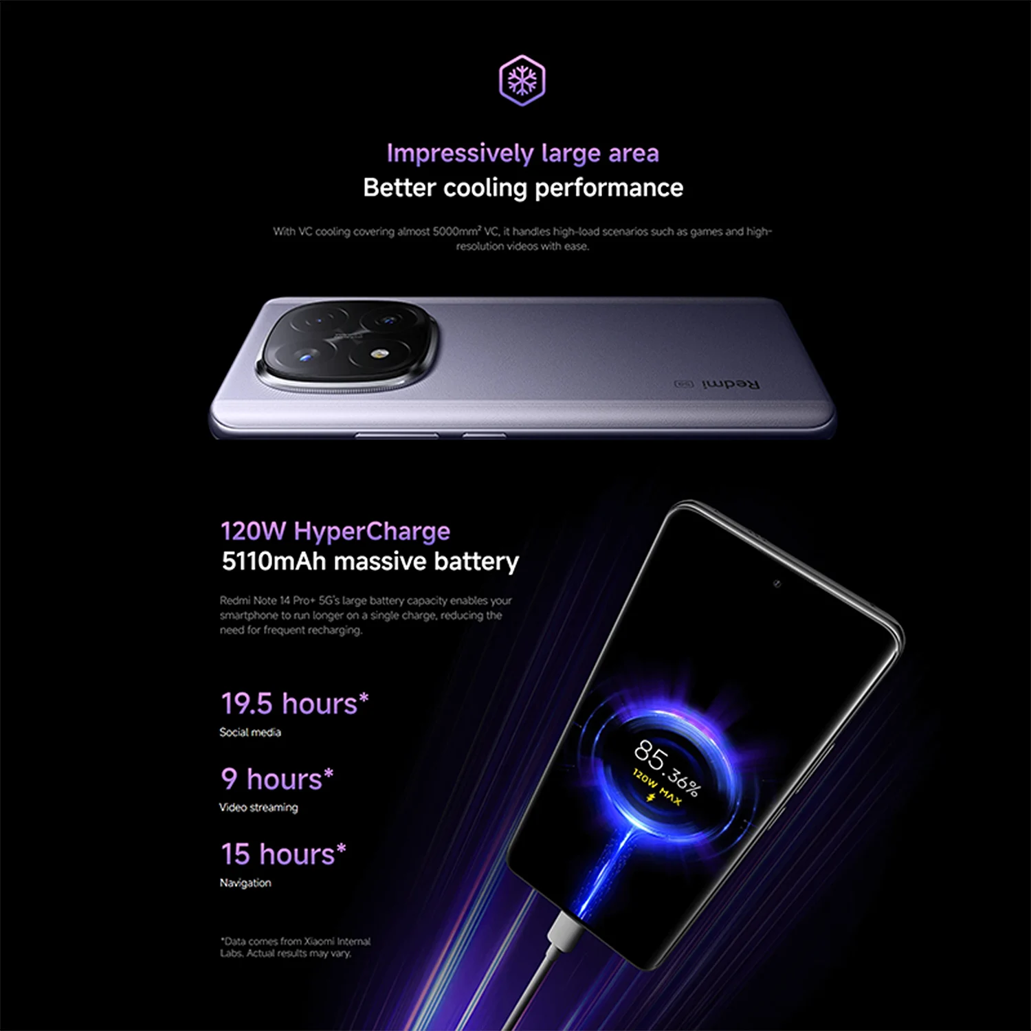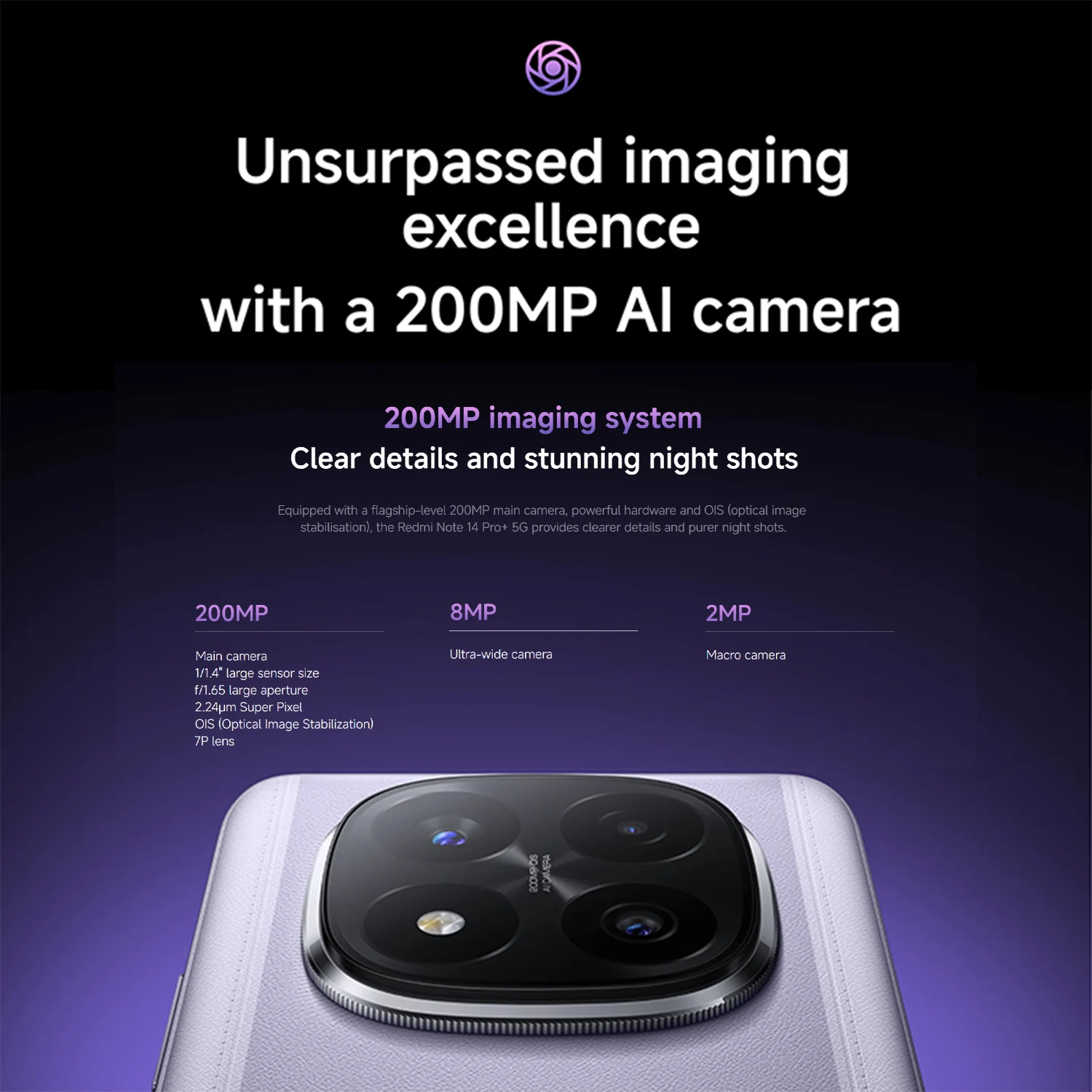 Xiaomi Redmi Note 14 Pro+ 5G, 8+256GB Global Version, 120Hz 6.67" AMOLED Display 200MP Al Camera 5110mAh 120W Snapdragon 7s Gen3